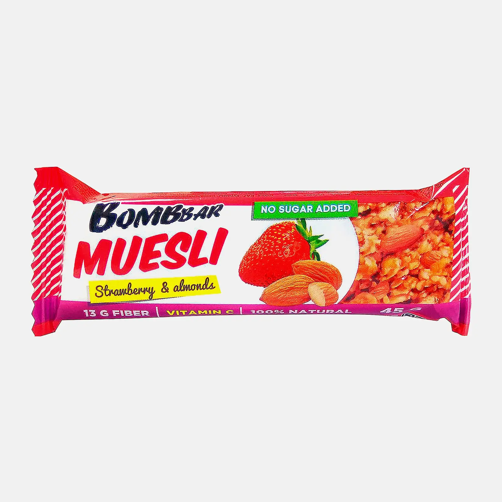 Протеиновый мюсли-батончик со вкусом клубники. Низкокалорийный десерт с высоким содержанием белка обладает приятной тягучей консистенцией и нежным ароматом. Не содержит сахара.