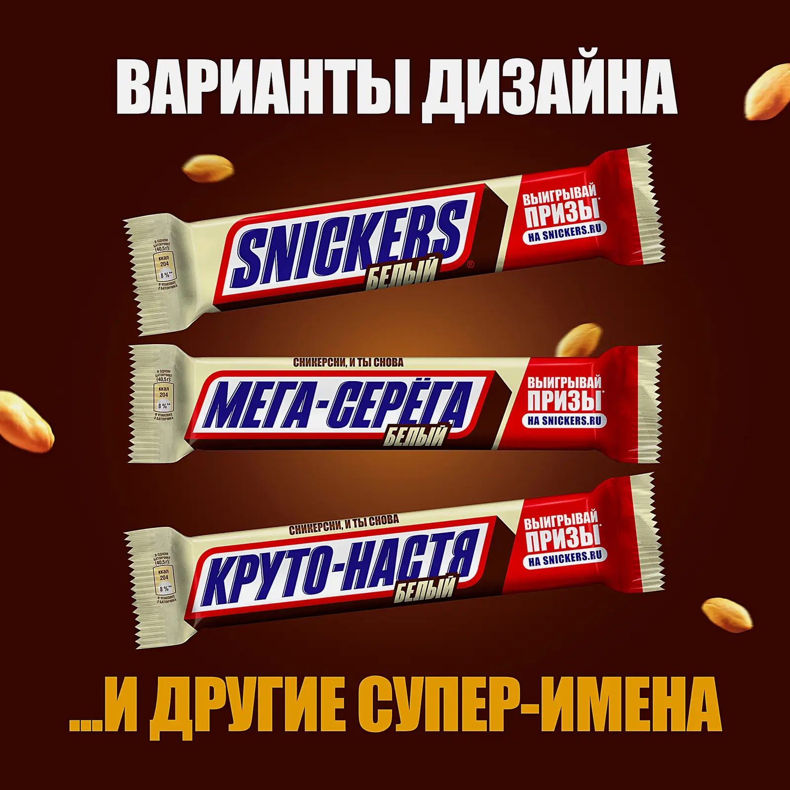 Шоколадный батончик с хрустящим жареным арахисом, мягкой карамелью и нежной нугой, покрытый сливочным белым шоколадом. Гармоничное сочетание текстур создаёт насыщённый вкус. Удобен для перекуса в дороге. Не содержит красителей и консервантов.