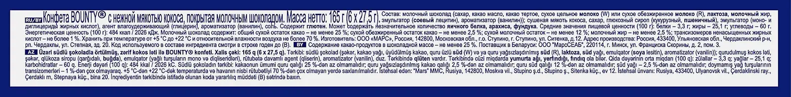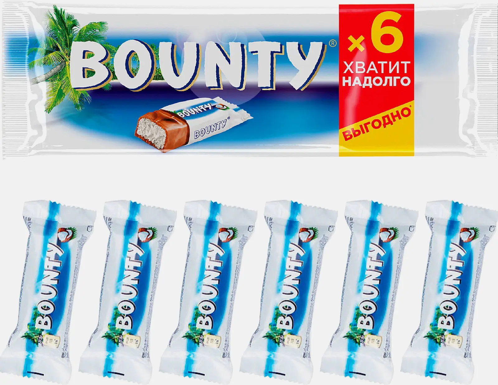 Шоколадные батончики с кокосовой начинкой, покрытые молочным шоколадом. Внутри упаковки 6 батончиков по 27.5 г — удобно взять с собой в дорогу или устроить тропический перерыв в течение дня.