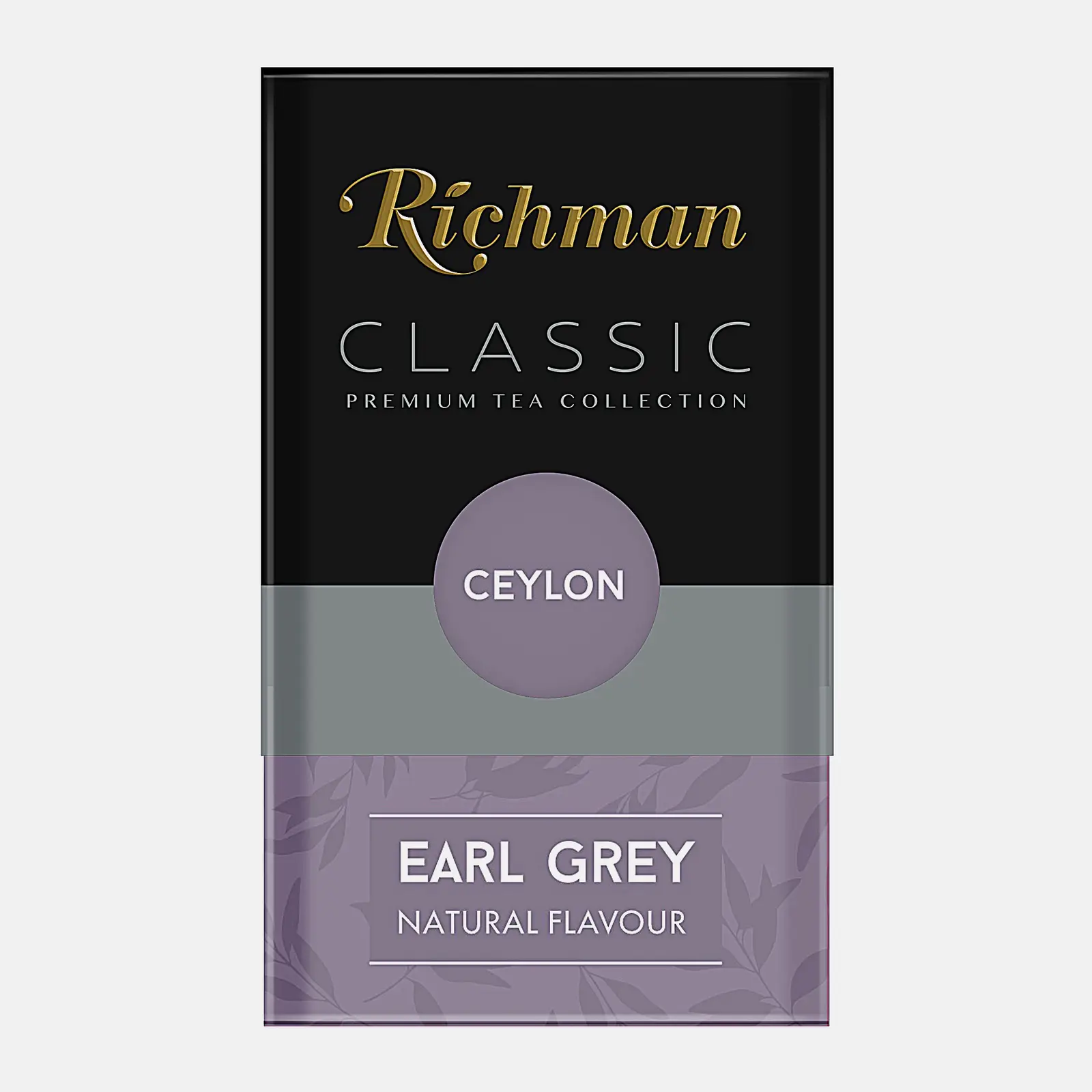 Чай черный Richman Classic Бергамот 100г продается в компактной коробке. У нее привлекательный дизайн, есть фирменный логотип. Ее можно приобрести для домашнего чаепития, для работы или для предприятий общественного питания. Заваривать его рекомендуется по всем правилам, крутым кипятком. Его настаивают в течение нескольких минут в чашке, которую желательно накрыть блюдцем. Получить уникальные вкусовые качества позволяют отборные листочки байхового сорта, выращенного на плантациях. Особый климат обеспечивает приятный янтарный цвет, хорошо выраженный аромат и насыщенный вкус. Его оттеняют бергамотовые нотки, которые делают вкус любимого напитка более яркими.