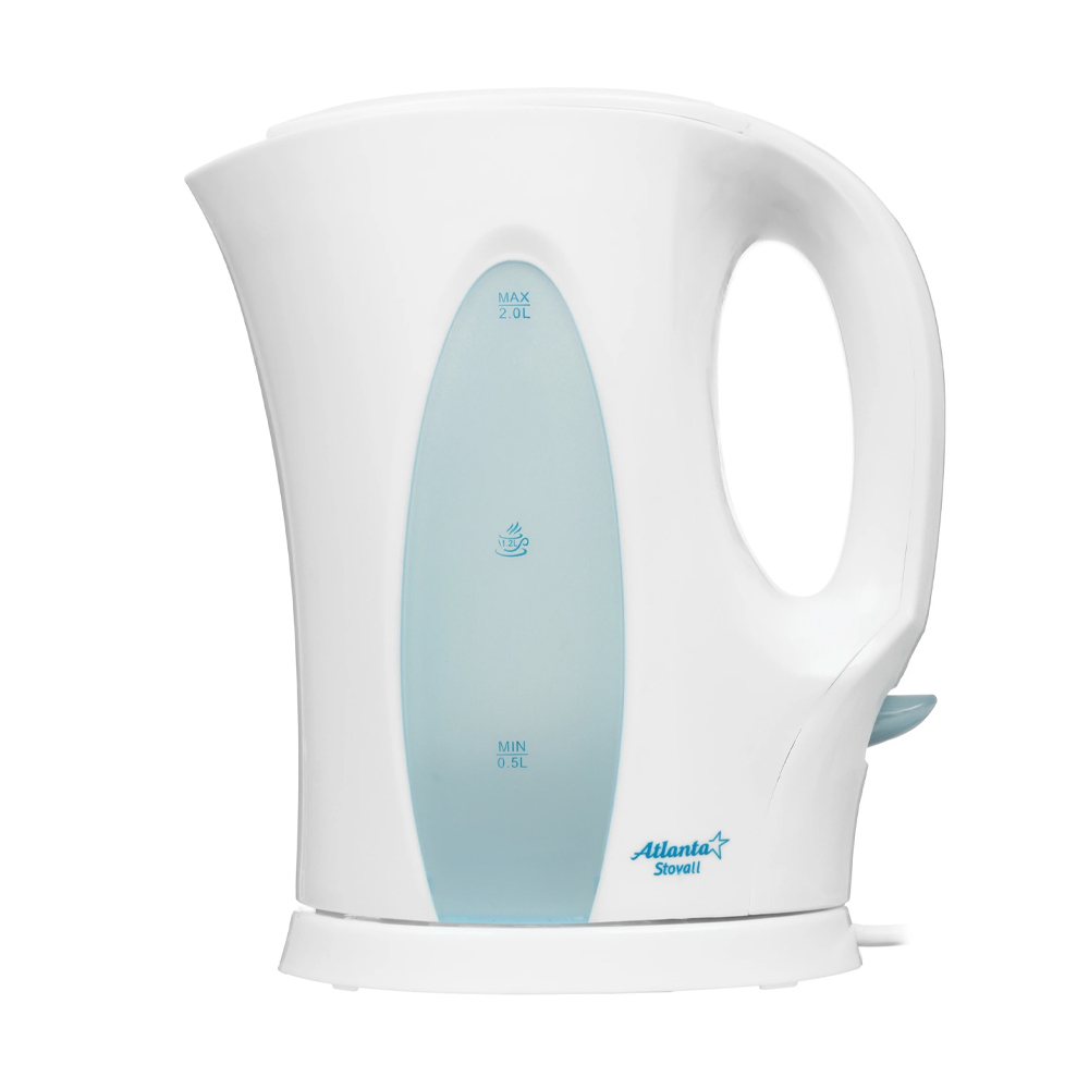 Электрочайник Atlanta ATH-2302 с пластиковым корпусом бело-голубого цвета вмещает 2 литра воды и позволяет быстро довести этот объем до кипения. В этом бытовом электроприборе предусмотрен открытый нагревательный элемент мощностью 2000 Вт. Для защиты от коррозии нихромовый ТЭН этой модели снабжен покрытием из нержавеющей стали. Крышка чайника откидывается вверх на на 90°, обеспечивая удобный налив воды. При наливе горячей воды сетчатый фильтр в носике чайника задерживает мелкие частицы накипи. В электрочайнике Atlanta ATH-2302 предусмотрена боковая прозрачная панель с мерной шкалой для определения объем налитой внутрь воды. Электроприбор поддерживает автоматическое отключение при закипании воды и при включении без воды внутри.