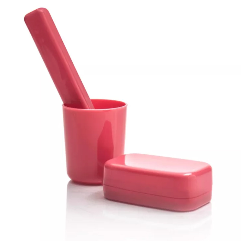 Набор состоит из трех незаменимых для соблюдения личной гигиены вещей: закрытой мыльницы, пластикового стакана и футляра для зубной щетки.