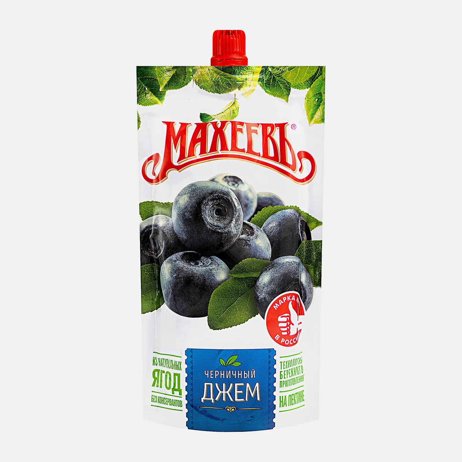Джем Махеевъ Черничный 300г — это сладкий продукт, который отличается насыщенным, ярко-выраженным вкусом с нотками ягод и приятным ароматом. Лакомство станет отличным дополнением к чаю, завтракам, десертам и различной выпечке. Основным ингредиентом угощения является черника, которая очень полезна для глаз. Сладость обладает густой консистенцией, благодаря чему она не растекается, его легко и удобно намазывать на хлеб, блины или оладьи. Продукт поставляется в упаковке дой-пак, которую удобно брать с собой на учебу, работу или в путешествие.