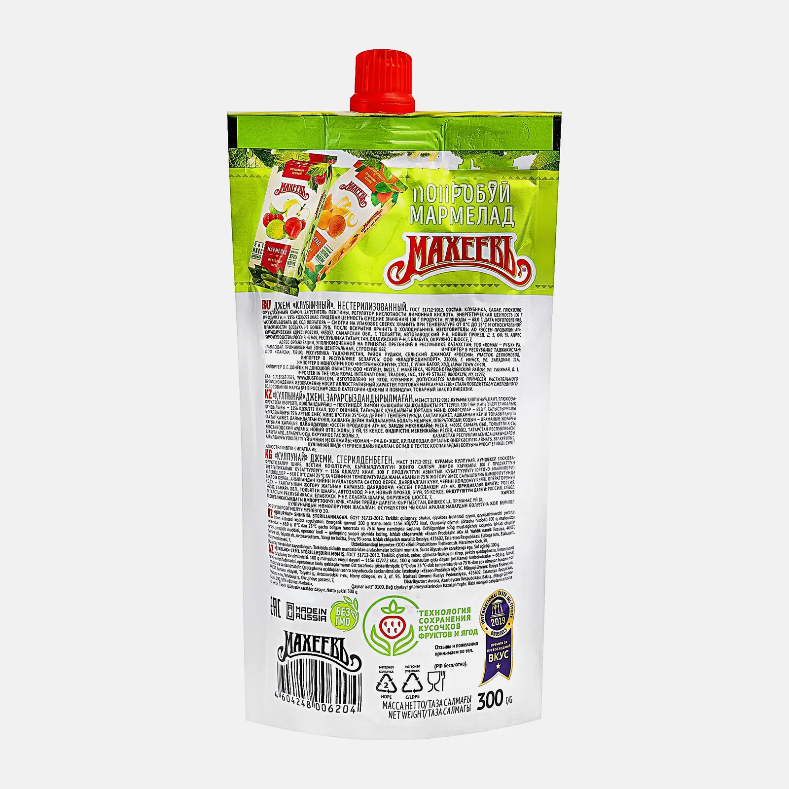 Джем Махеевъ Клубничный 300г — это вкусное лакомство, которое изготавливается из спелых ягод без использования искусственных красителей и ароматизаторов. Оно обладает плотной, густой консистенцией с добавлением небольшого количества мякоти и косточек. Сладость насыщенного красного цвета имеет ярко-выраженный вкус и приятный аромат, как у настоящего варенья. Продукт поставляется в упаковке дой-пак, из которой его можно быстро и легко выдавливать. Такую тару удобно хранить после вскрытия и подавать как к обеденному, так и праздничному столу. Джем отлично подойдет в качестве начинки для пирогов, слоек, топпинга для десертов. Его можно употреблять с творогом, блинами, кашей, печеньями.