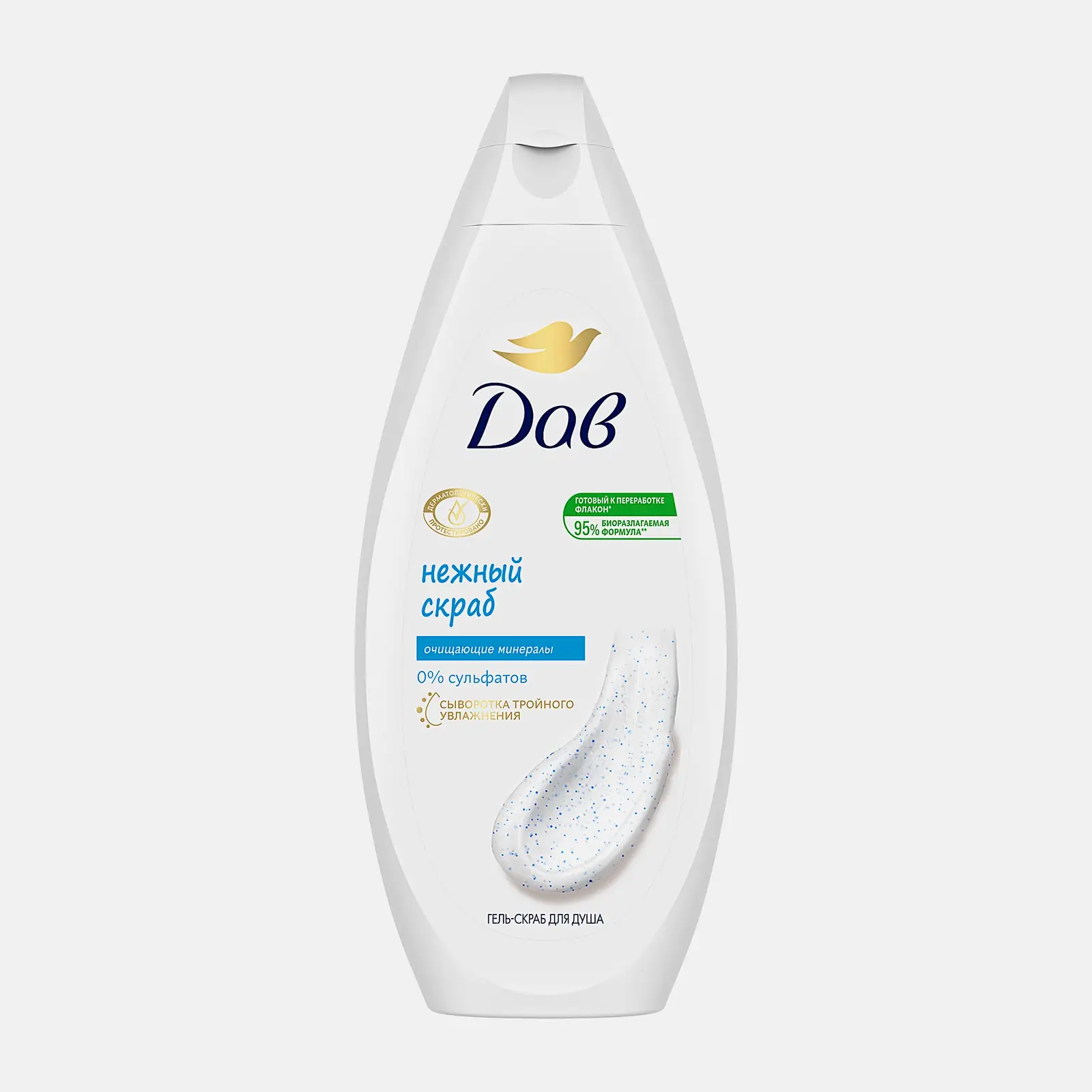Гель-скраб с очищающими минералами и сывороткой тройного увлажнения бережно удаляет ороговевшие клетки, придавая коже гладкость и ухоженный вид. В составе 95% натуральных компонентов, без сульфатов. Текстура кремовая, с деликатными отшелушивающими гранулами. Подходит для ежедневного ухода, в том числе за чувствительной кожей.