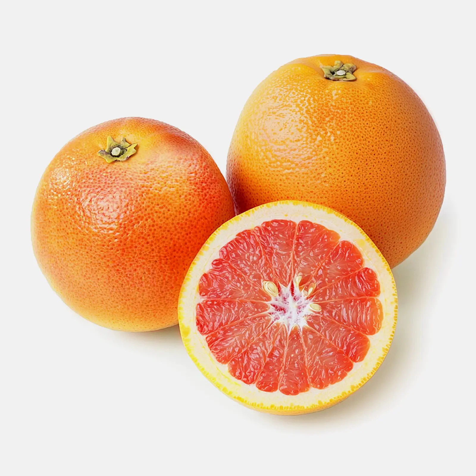 Экзотический цитрус золотисто-оранжевого цвета с плотной кожицей, под которой спрятаны дольки с сочной красноватой мякотью. У грейпфрута бодрящий аромат и гармоничный кисло-сладкий вкус.