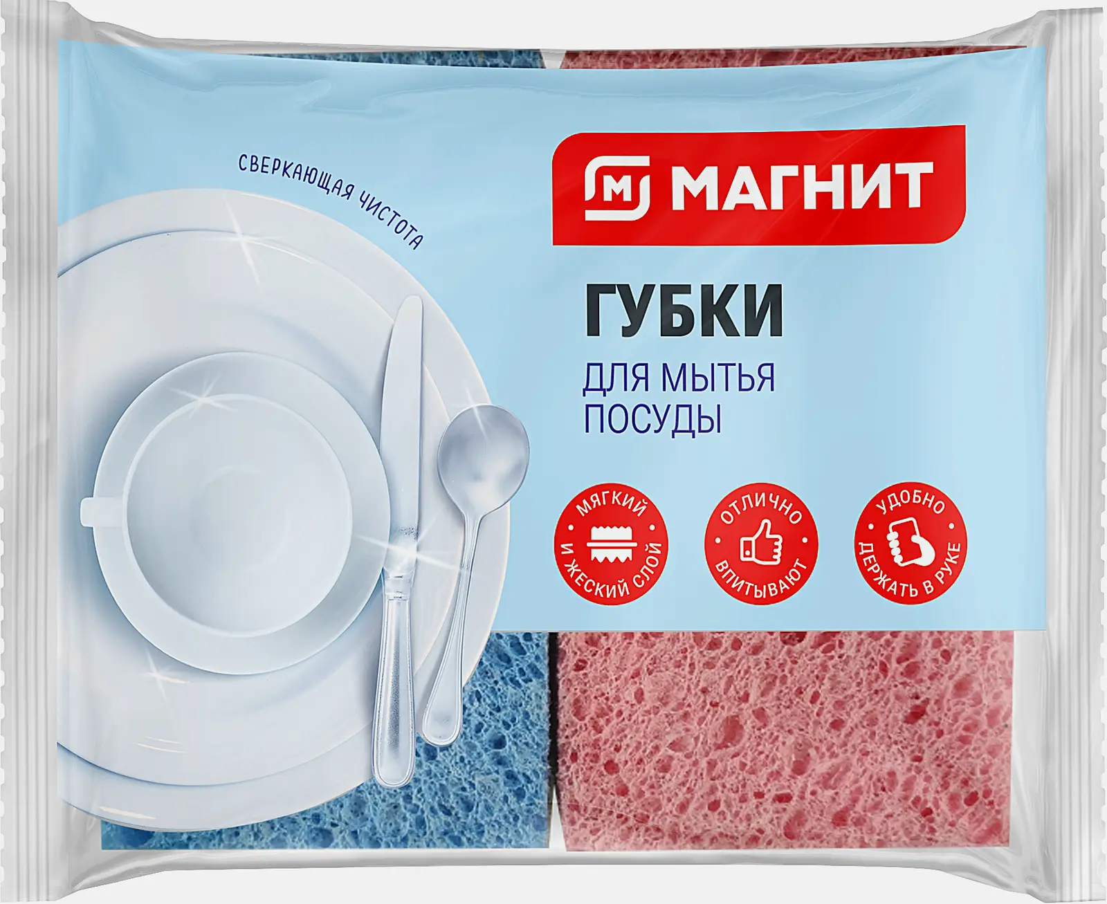 Губка для посуды Магнит из целлюлозы 2шт