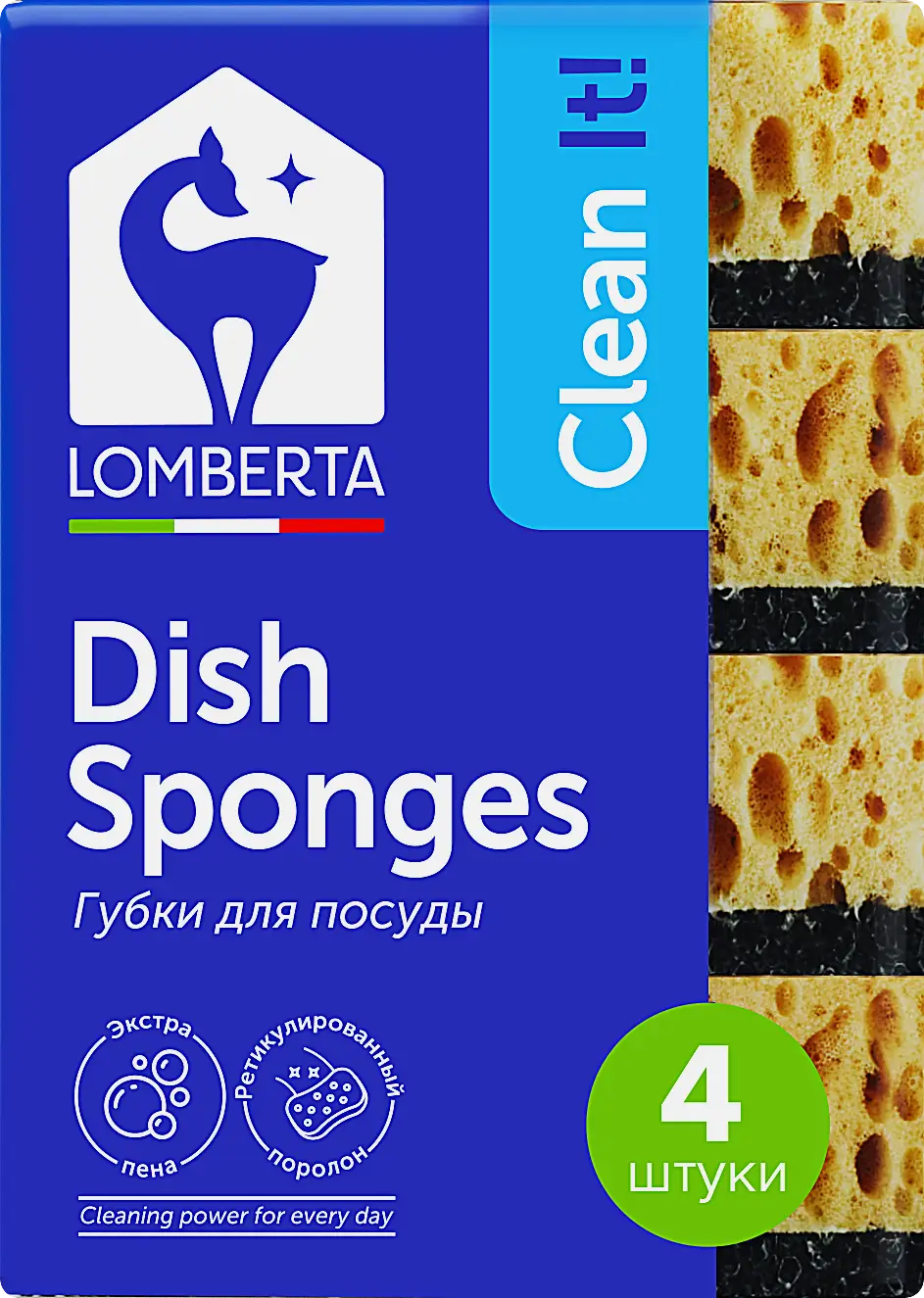 Двусторонние губки с крупнопористым и ретикулированным слоями эффективно удаляют загрязнения, не повреждая деликатные поверхности. Подходят для мытья посуды, плит, раковин и кафеля. Удобный набор из 4 универсальных губок для кухни и ванной.