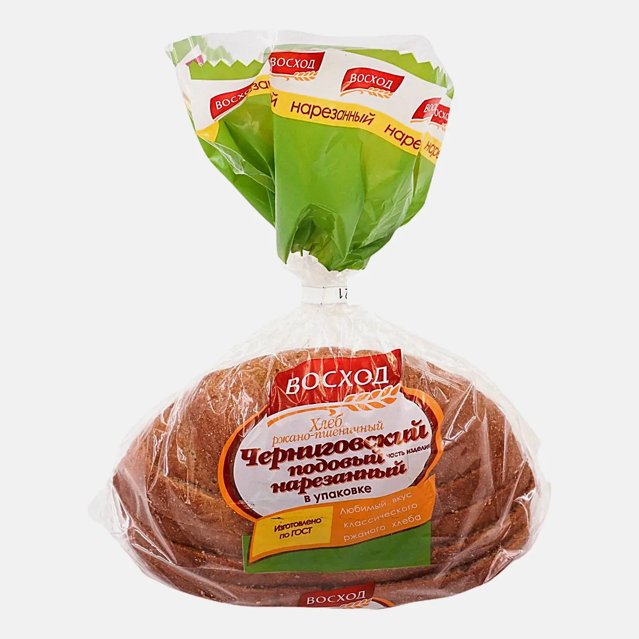 Хлеб Восход Ржаной пшеничный Черниговский в нарезку 250г создается в соответствии с требованиями ГОСТа по проверенным временем традиционным рецептам. Состоит хлебобулочное изделие из натуральных ингредиентов — красителей, консервантов, генетически модифицированных организмов и прочих искусственных компонентов среди составляющих нет. В качестве пищевой добавки здесь присутствует ароматный кориандр. Продукт заранее нарезан на кусочки, поэтому вам не придется тратить время на нарезку. Достаточно вытащить хлебные ломтики из пакета и использовать для приготовления бутербродов или употребить вместе с основными блюдами. Хлеб питателен, поэтому сделает любую трапезу сытнее. Он хорошо вписывается в вегетарианские и веганские рационы питания. Упакован продукт в пластиковый пакет и при соблюдении необходимых условий хранится до трех суток.