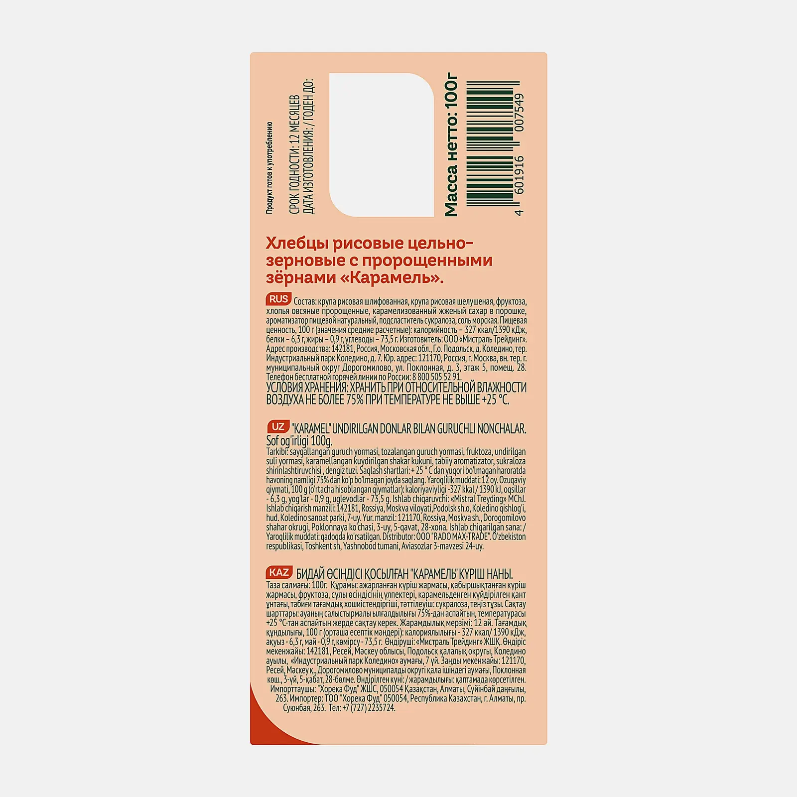 Хлебцы Fitstart Карамель рисовые 100г представляют собой хорошую альтернативу высококалорийным десертам. Они содержат пророщенные зерна, необходимые для полезного перекуса. В их состав входят витамины, микроэлементы и антиоксиданты, сохраняющие молодость кожи, укрепляющие кости и мышечную ткань. Благодаря медленным углеводам налаживаются процессы пищеварения. Продукт не вызывает проблем с лишним весом и дополняет различные блюда. На его основе готовятся тартар с лососем, канапе с крабом, диетические сэндвичи и тосты. Хлебцы хранятся в запечатанной упаковке до 12 месяцев, в сухом прохладном месте. Компактные размеры пакета позволяют переносить его с собой, брать в поездки, на пикник или прогулку.