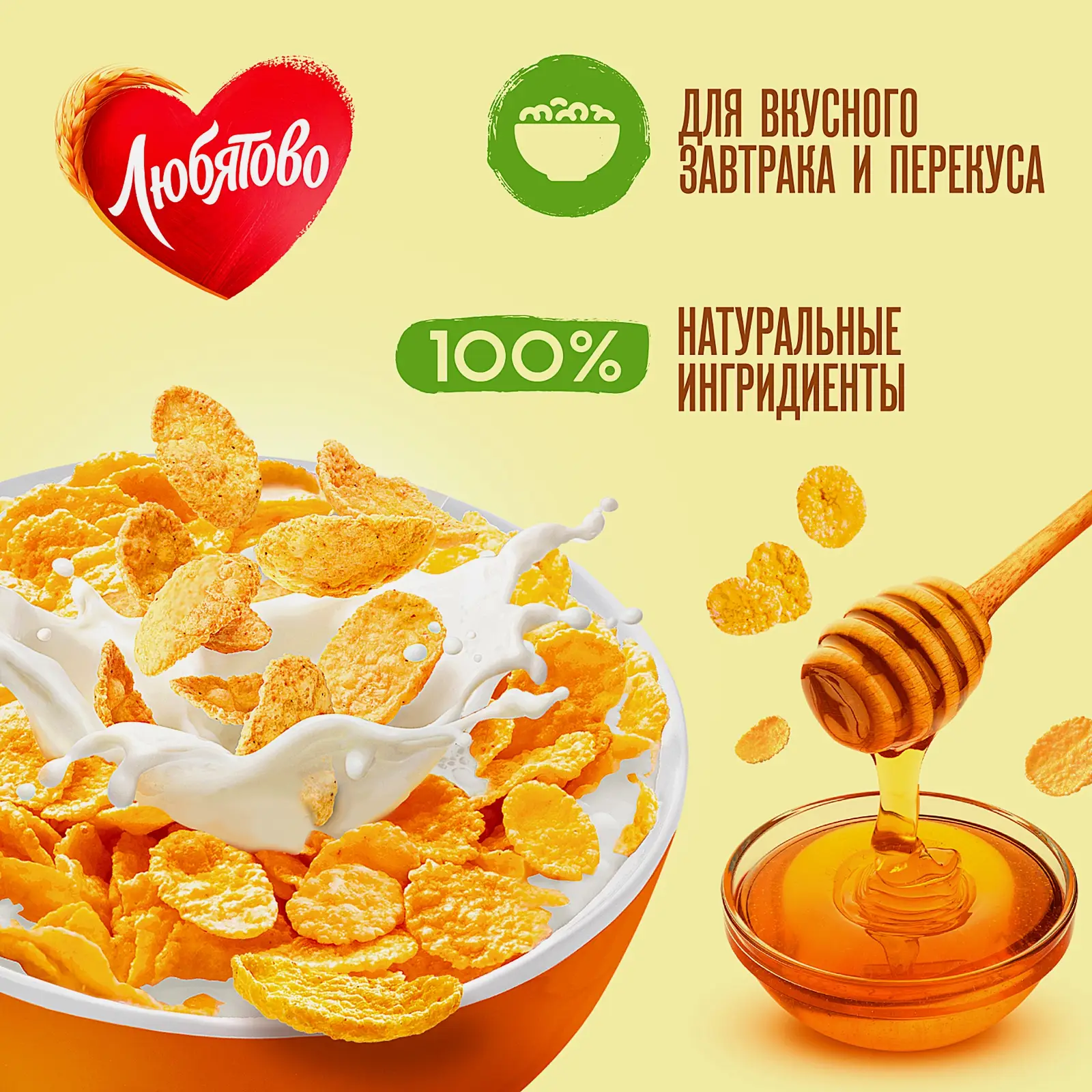 Эти хрустящие хлопья с натуральным мёдом в составе вкуснее всего есть с молоком, причем с холодным. Молоко принимает в себя медовый вкус — сочетание невероятно аппетитное. А хлопья не так быстро размокают в холодном молоке. Хорошо ими похрустеть и просто с чаем. Медовые хлопья слаще обычных.