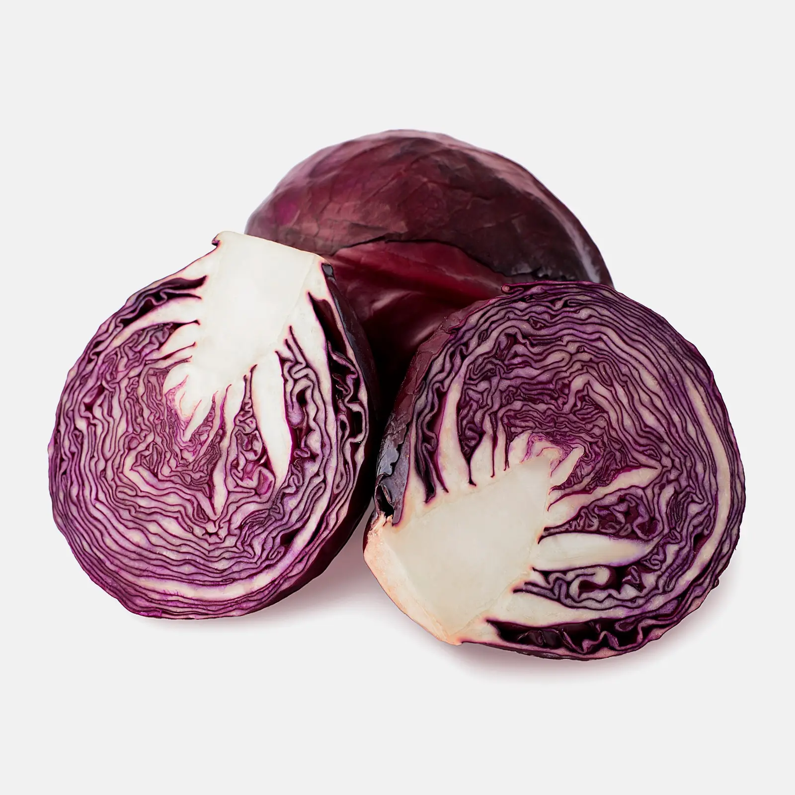 Капуста краснокочанная выделяется среди прочих насыщенным лиловым цветом. Листья толще и плотнее, чем у белокочанной, а вкус — чуть острее, но сладость всё же присутствует. Сочно хрустит и эффектно смотрится в салатах.