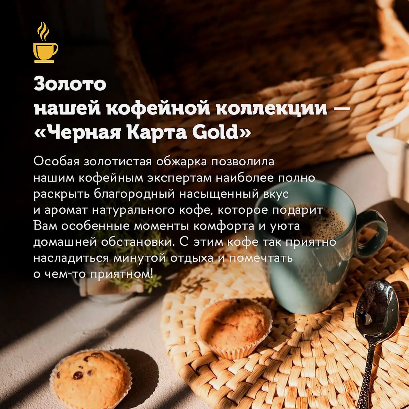 Кофе отличается сбалансированным мягким вкусом, в котором шоколадные и ореховые нюансы соседствуют с легкой пикантной кислинкой. Он относится к сублимированному типу.