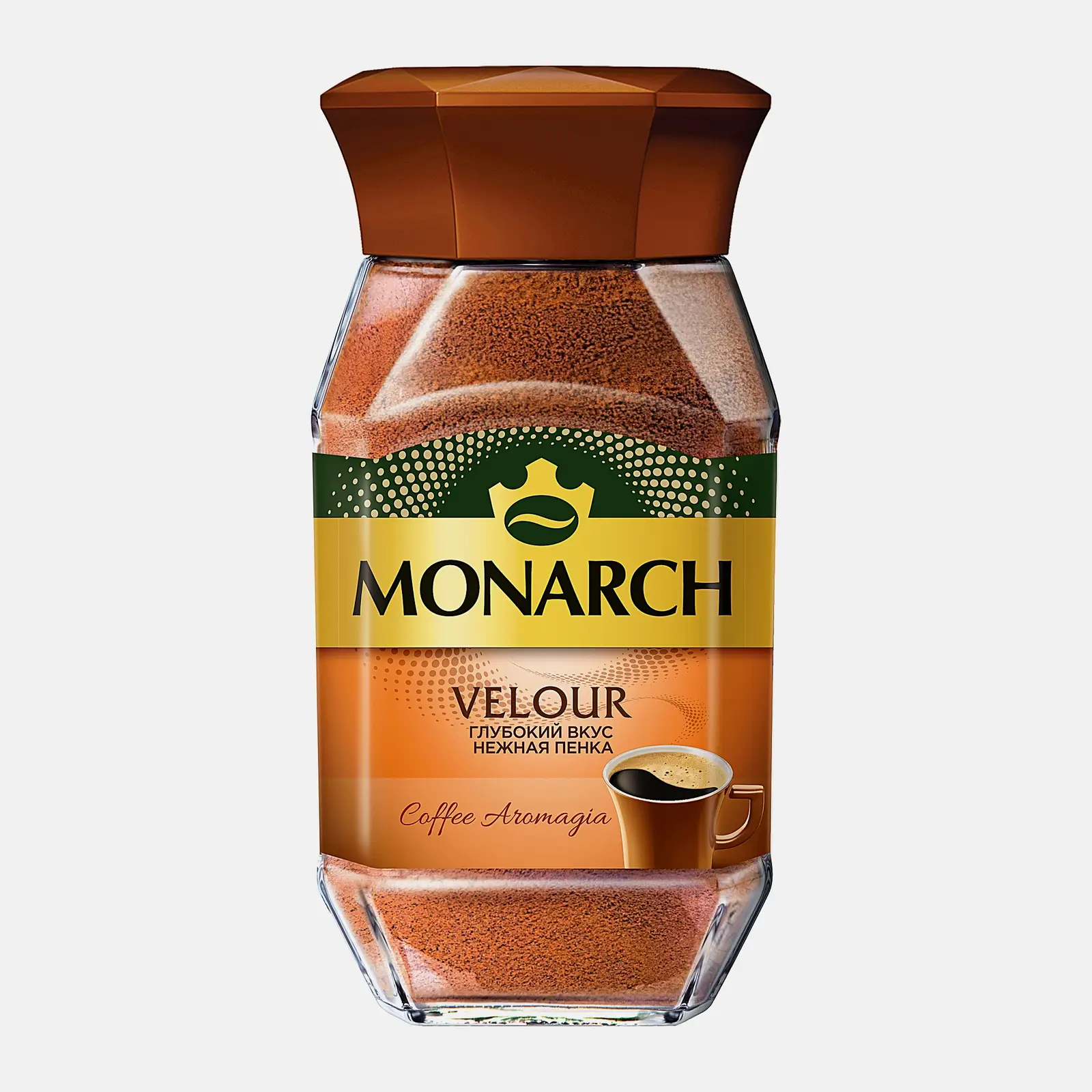 Натуральный растворимый кофе из отборных зёрен средней степени обжарки — тонизирующий напиток с нежной пенкой, который удивляет великолепным бархатистым вкусом и изысканным ароматом.