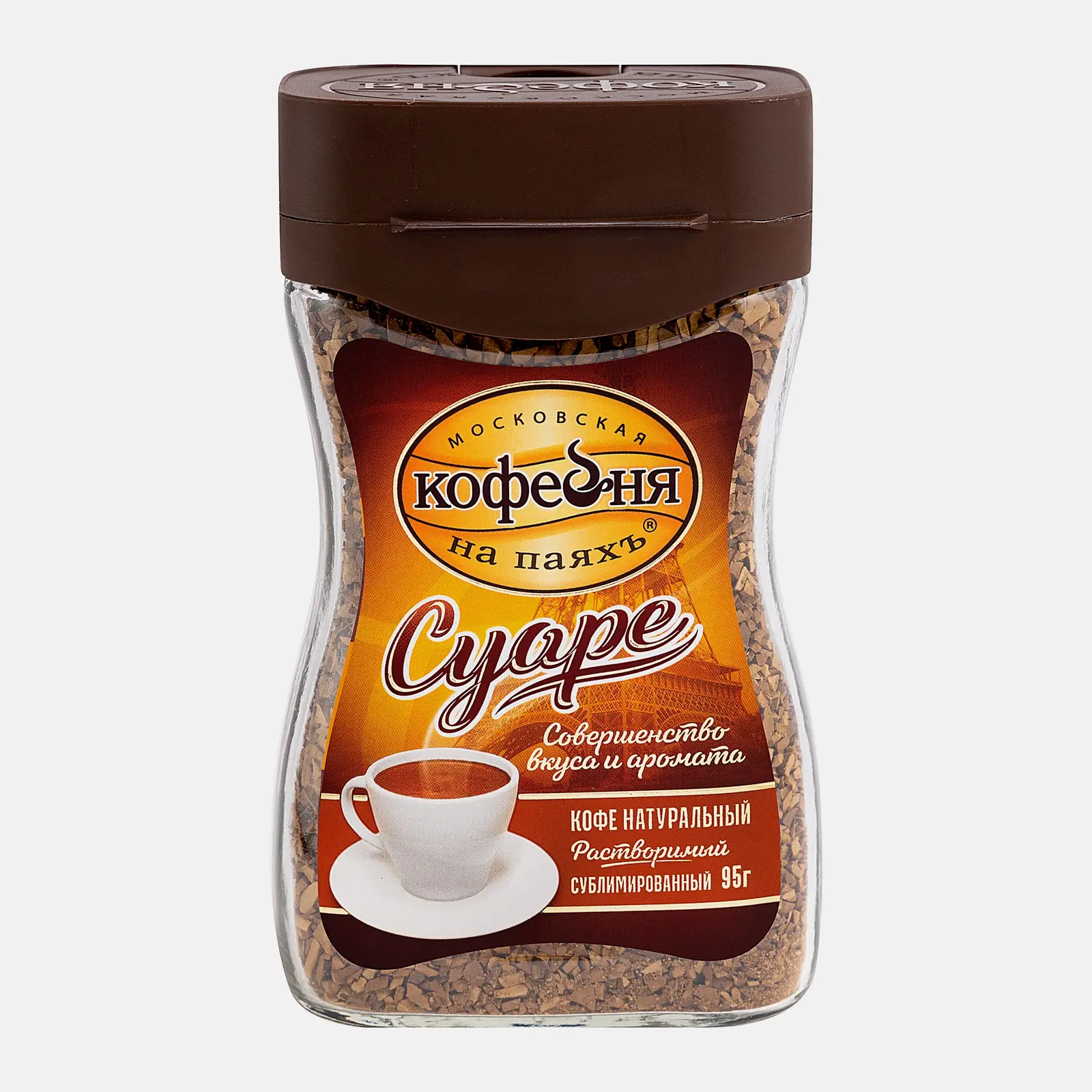 Кофе создан из отборных зерен, которые подвергают плотной обжарке и превращают в крупные сублимированные гранулы. Кофе отличается насыщенным ароматом и крепким бодрящим вкусом.
