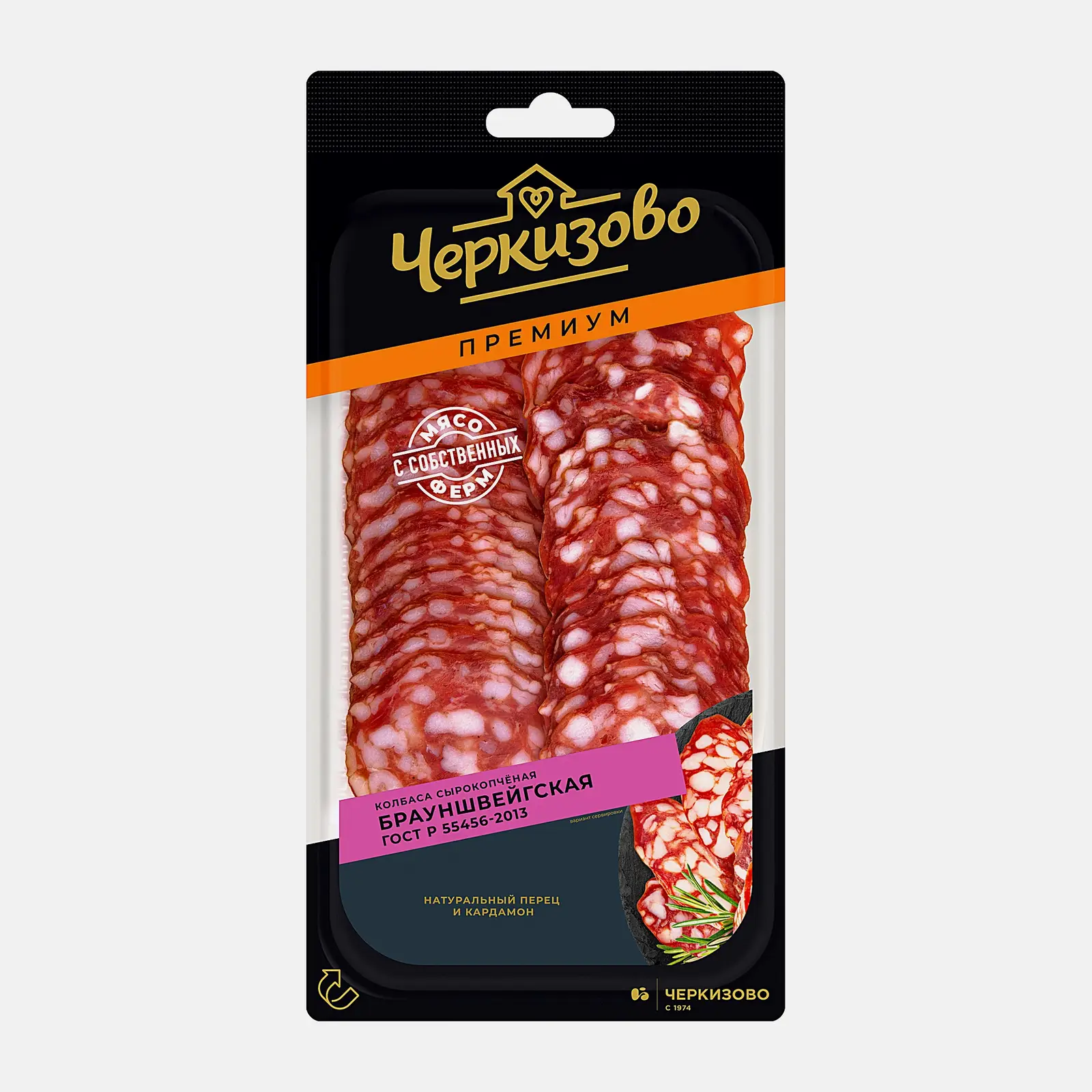 Мясной деликатес произведен из свинины и говядины. Пикантный вкус и аромат ему придало копчение на буковой щепе. Колбаса сухая, легко разрезается ножом.