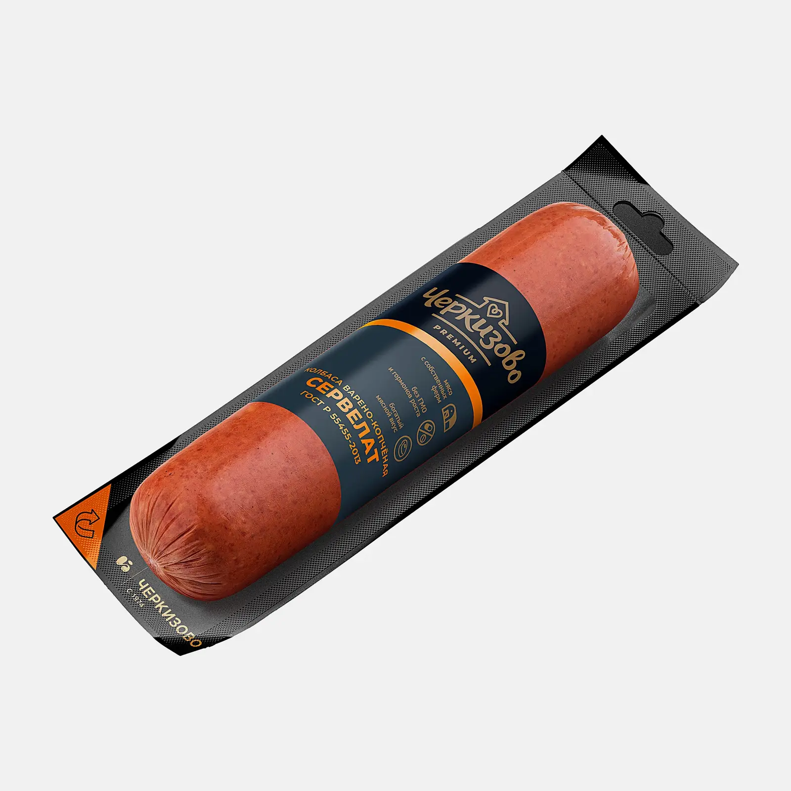 Колбаса Черкизовский МПЗ Сервелат варено-копченый — классический вариант мясного продукта, который придется по нраву и взрослым, и детям. Он изготовлен из натуральной фермерской свинины, выращенной в экологически чистых условиях. В составе нет ГМО, гормонов роста и вредных примесей. Колбаса легко разрезается ножом, имеет приятный вкус и аромат благодаря копчению. Она помогает быстро утолить голод и дарит длительное чувство сытости. Ее можно использовать с бутербродами, добавлять в соленую выпечку.Запакована колбаса в вакуумный пакет. Состав, срок годности — на обратной стороне.