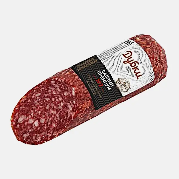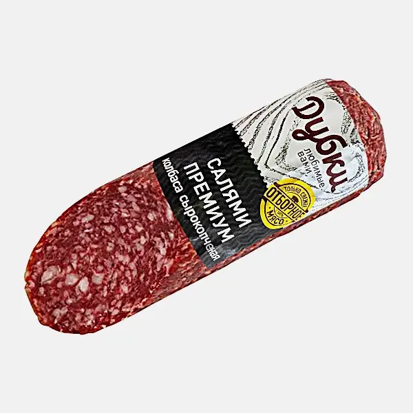 Колбаса Дубки Салями Премиум сырокопченая 200г отличается отменным вкусом и традиционной кислинкой. Продукт высшего сорта изготавливается из отборной говядины, свиной грудинки с добавлением острого перца, гвоздики и кардамона. Однородная плотная мякоть ярко-розового цвета с вкраплениями шпика легко нарезается тонкими ломтиками, подходит для любого стола.Колбасу можно подать в составе мясной нарезки, сделать бутерброды, использовать для приготовления солянки. Продукт выпускается в виде небольшой палки, такой формат удобно брать в дорогу, колбаса не испортится, ее точно хватит на праздничный стол.