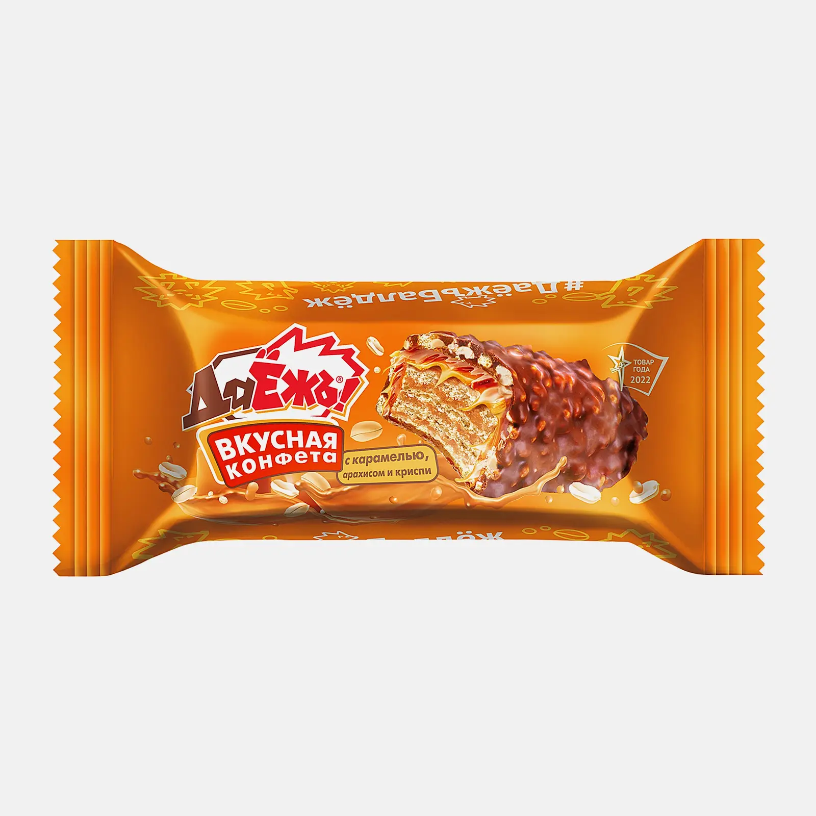 Миниатюрные вафельные батончики, состоящие из нежной сливочной начинки, тягучей карамели, хрустящих гранул и кусочков дроблёного арахиса.