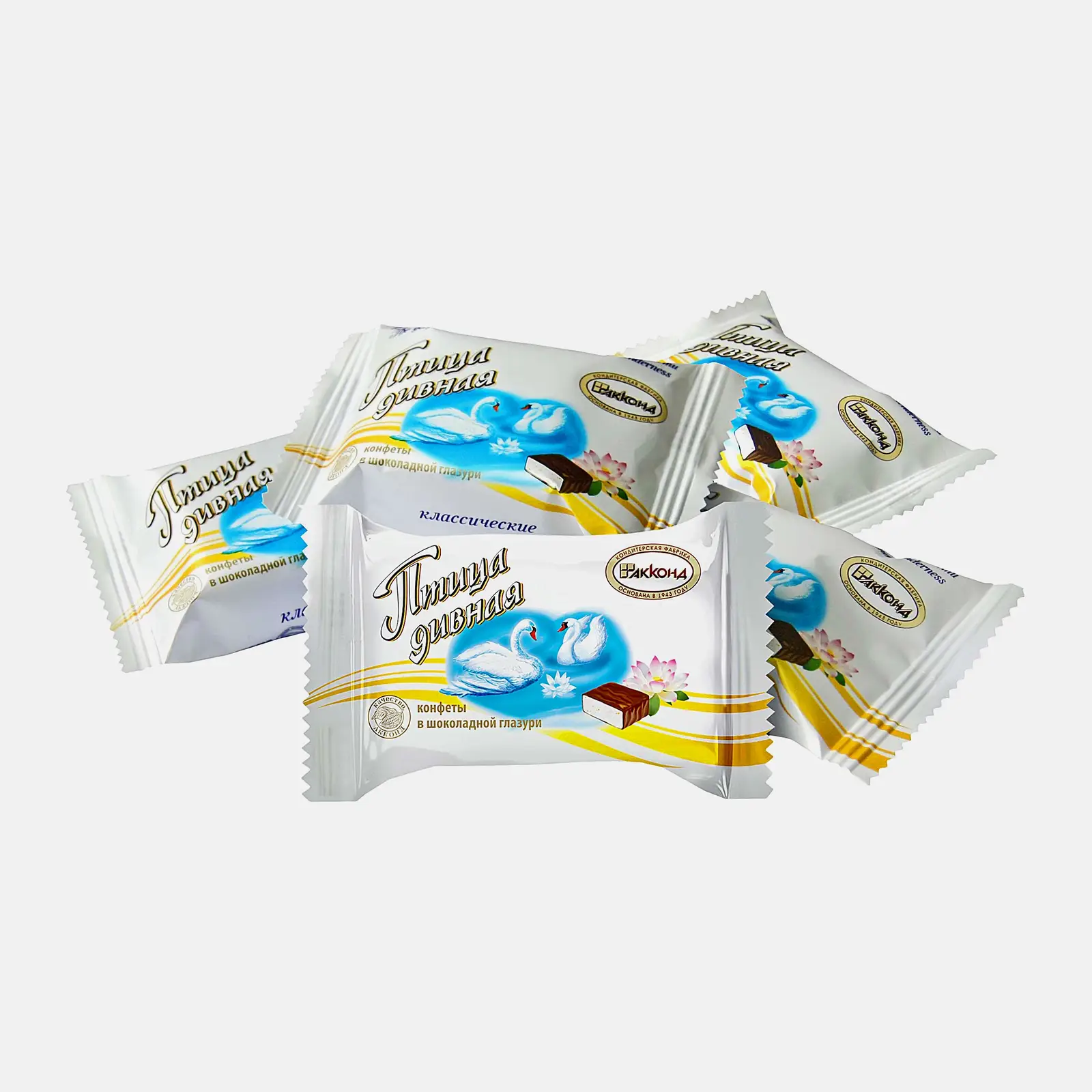 Конфеты Акконд Птица дивная глазированные — десерт, выполненный на основе нежного и воздушного суфле, покрытого молочным шоколадом. Благодаря своей легкой структуре он тает во рту. В состав представленной сладости входят свежие и натуральные ингредиенты высшего качества, такие как сливочное масло, какао-порошок, молочные продукты. Эти конфеты обладают высокой энергетической ценностью — они быстро утоляют голод и дарят чувство насыщения, а также заряд бодрости и энергии, улучшают настроение. Каждое суфле оформлено в герметичную индивидуальную упаковку, благодаря чему его удобно брать с собой в качестве перекуса на работу, учебу, на прогулку и в дорогу. Его можно сочетать с различными сортами чая и кофе.
