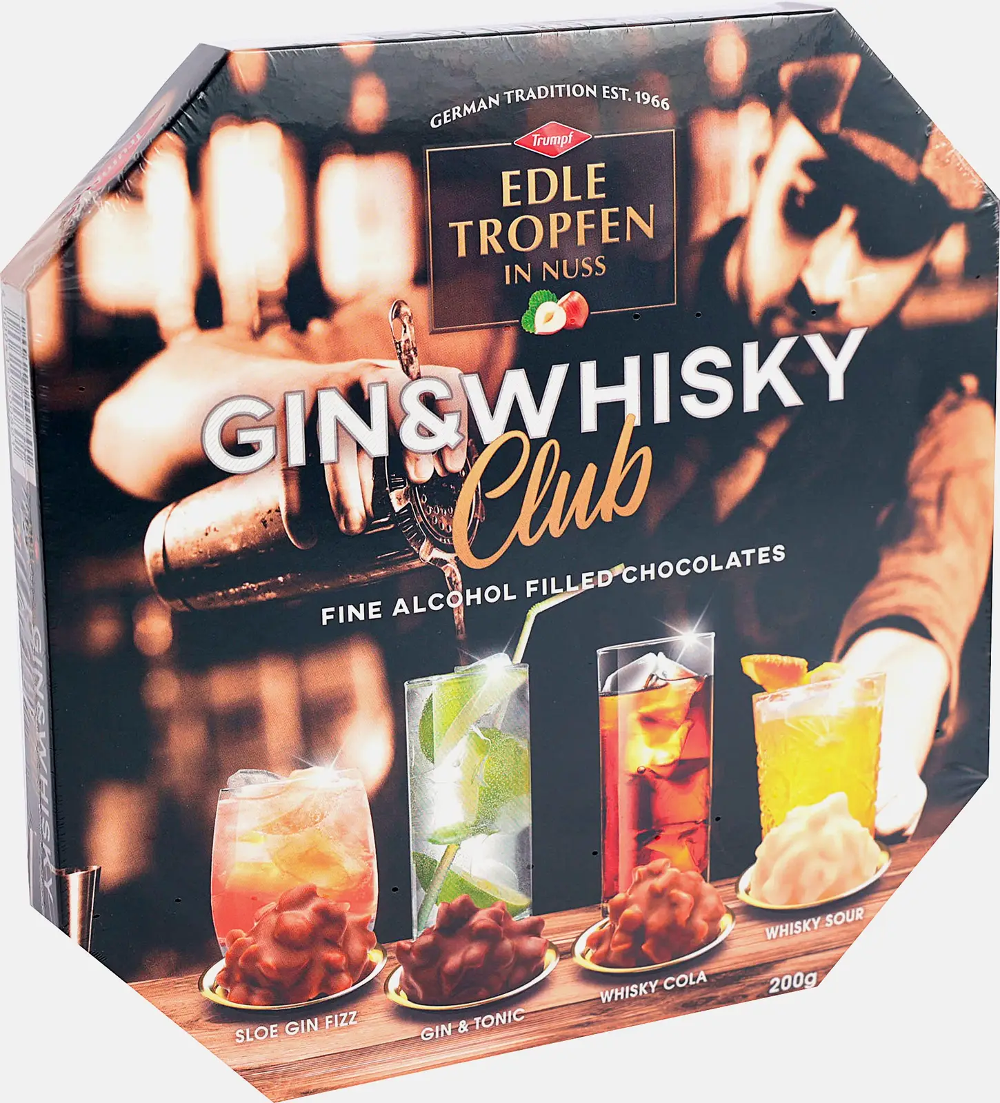 Под оболочками из белого, молочного и тёмного шоколада с кусочками фундука прячутся сахарные капсулы с алкогольными коктейлями 4-х видов на основе виски и джина: джин-физ, джин-тоник, виски-кола и виски-сауэр.