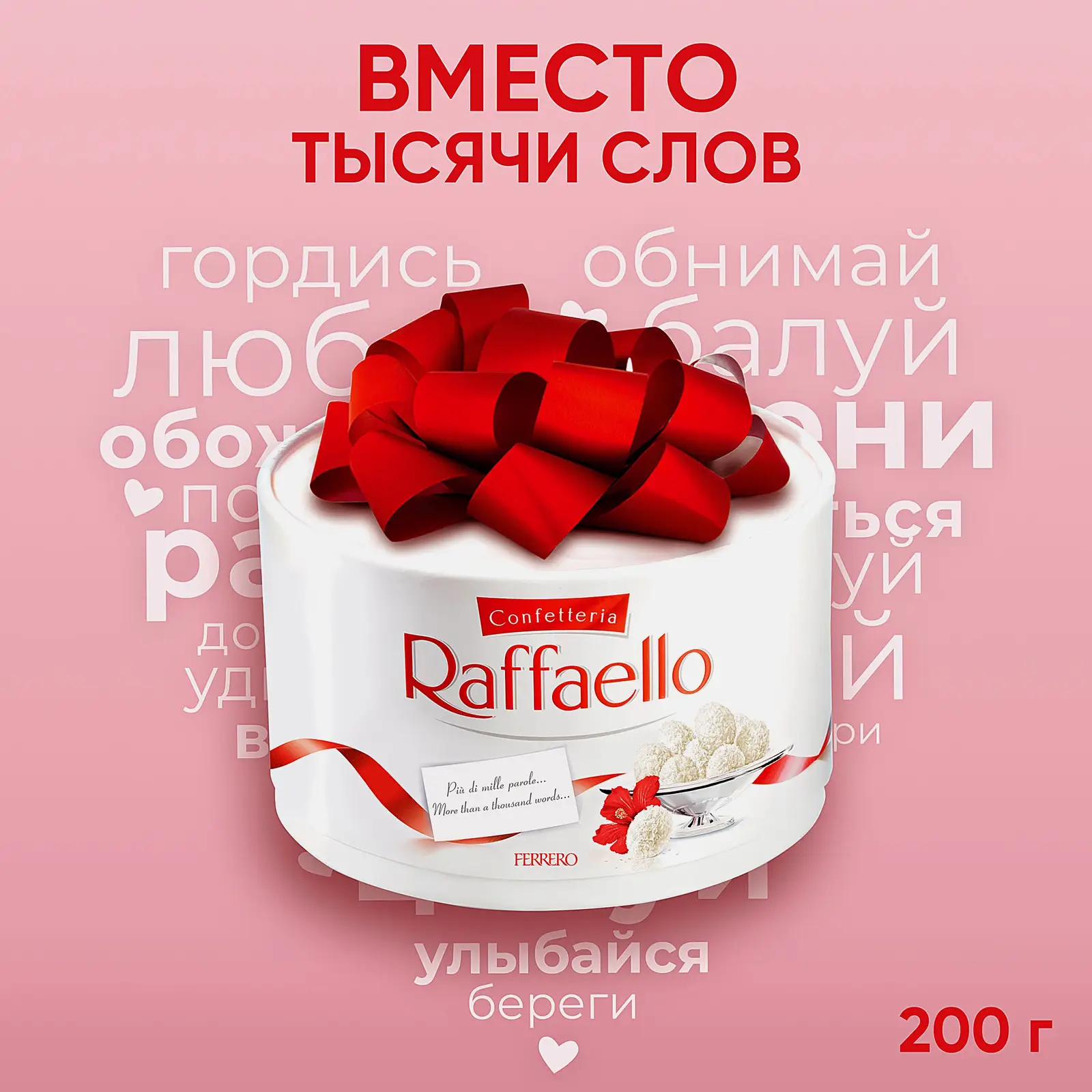 Торт Raffaello с цельным миндальным орехом в кокосовой обсыпке — это гармония ингредиентов, отобранных с особой заботой. Сладкий белый миндаль и кокосовый орех с тропических островов придают невероятную нежность вкусу.