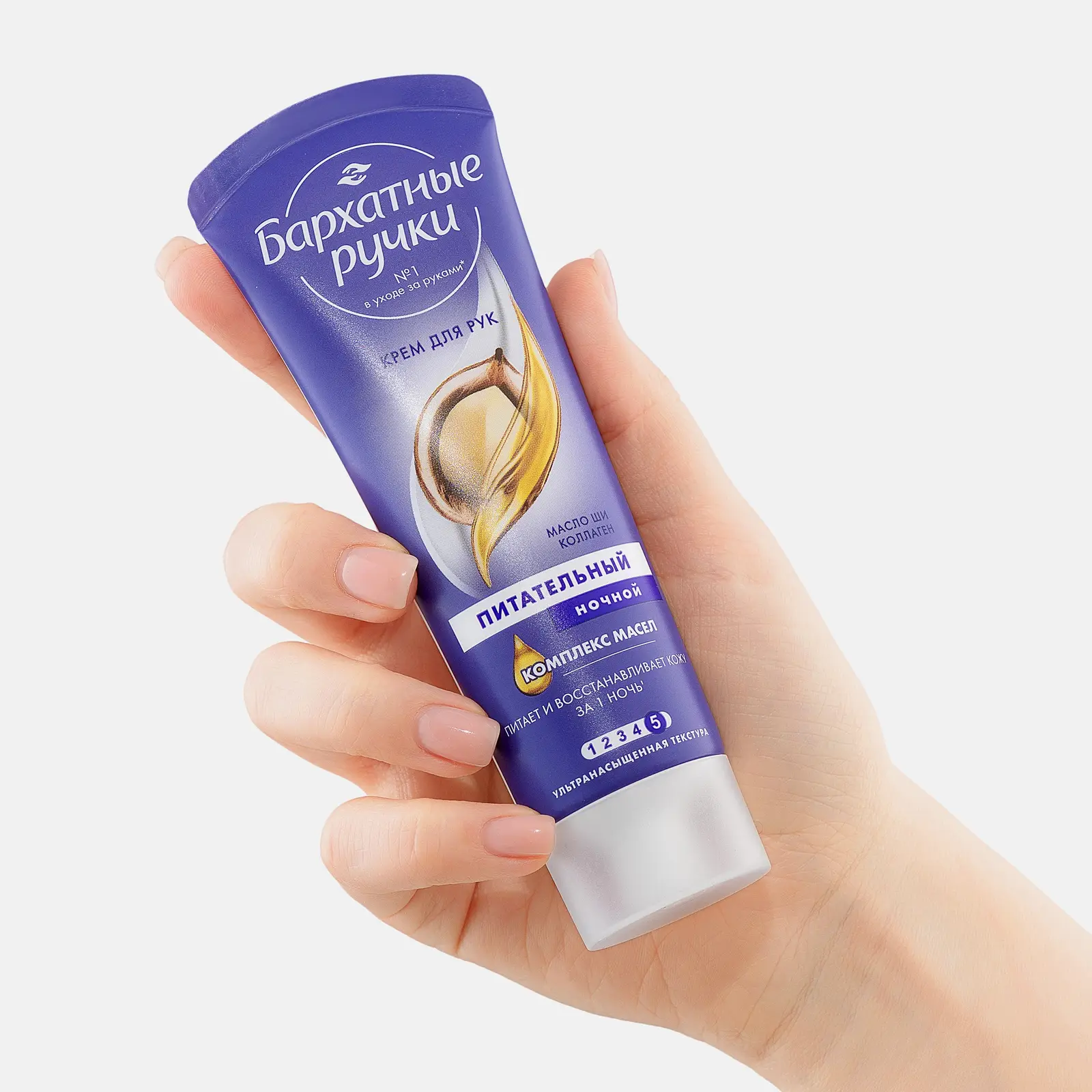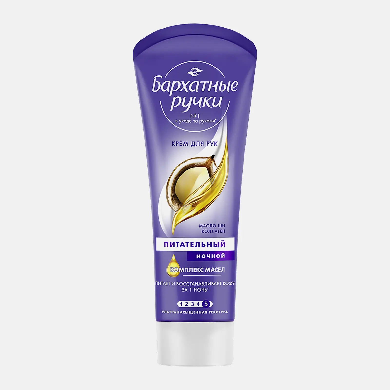 Ночной крем с маслом ши и коллагеном за ночь восстанавливает кожу рук после воздействия дневных стресс-факторов. Он насыщает её питательными веществами и повышает упругость. Комплекс масел интенсивно увлажняет, смягчает и предотвращает сухость.