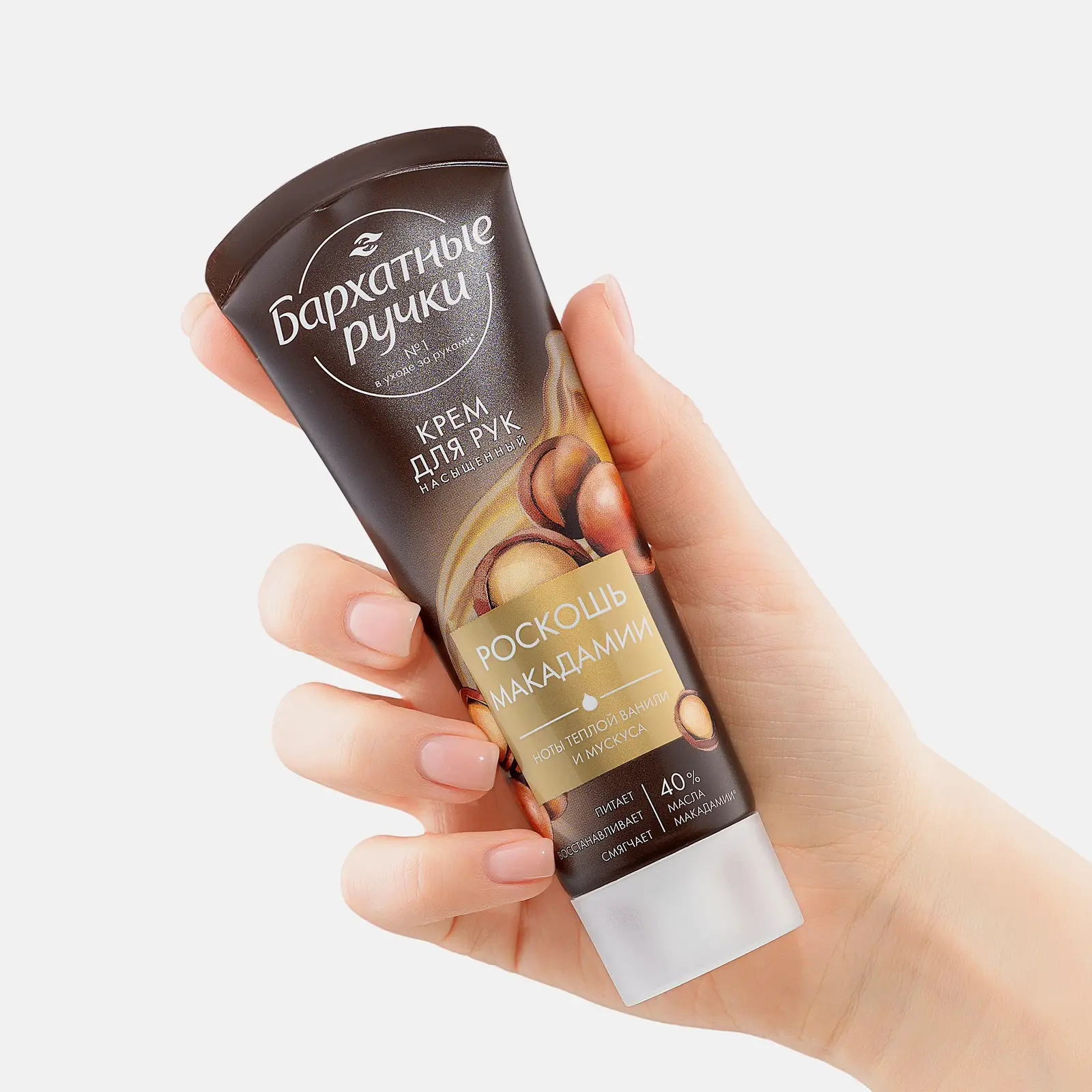 Крем для рук с маслом макадамии, глицерином и пантенолом интенсивно увлажняет, смягчает и восстанавливает кожу. Аллантоин успокаивает, снимая зуд и раздражение, а витамин В3 осветляет пигментацию. Результат — мягкая, ухоженная и сияющая кожа.