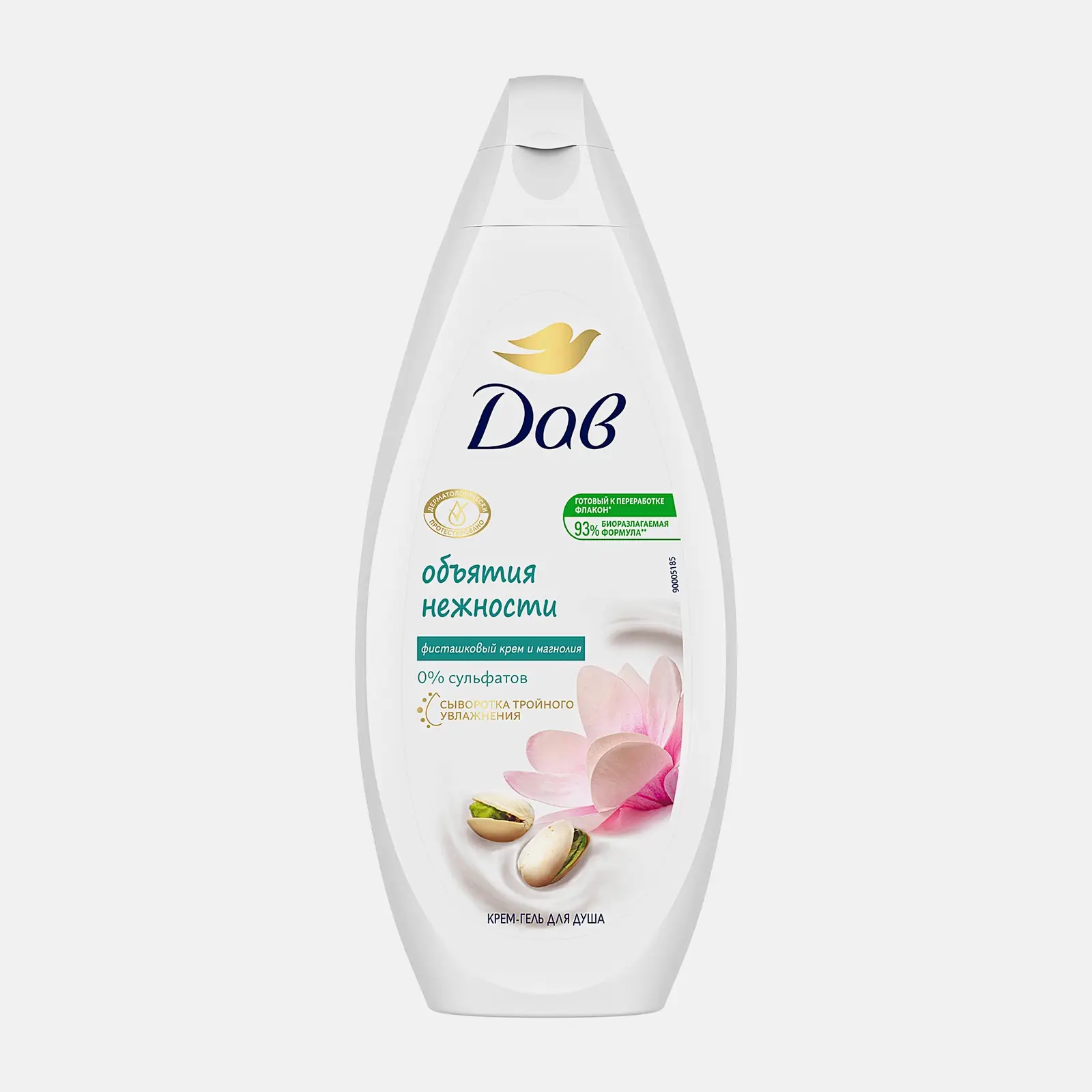 Крем-гель для душа разработан на основе увлажняющей формулы с сывороткой тройного увлажнения, с фисташковым кремом и экстрактом магнолии.