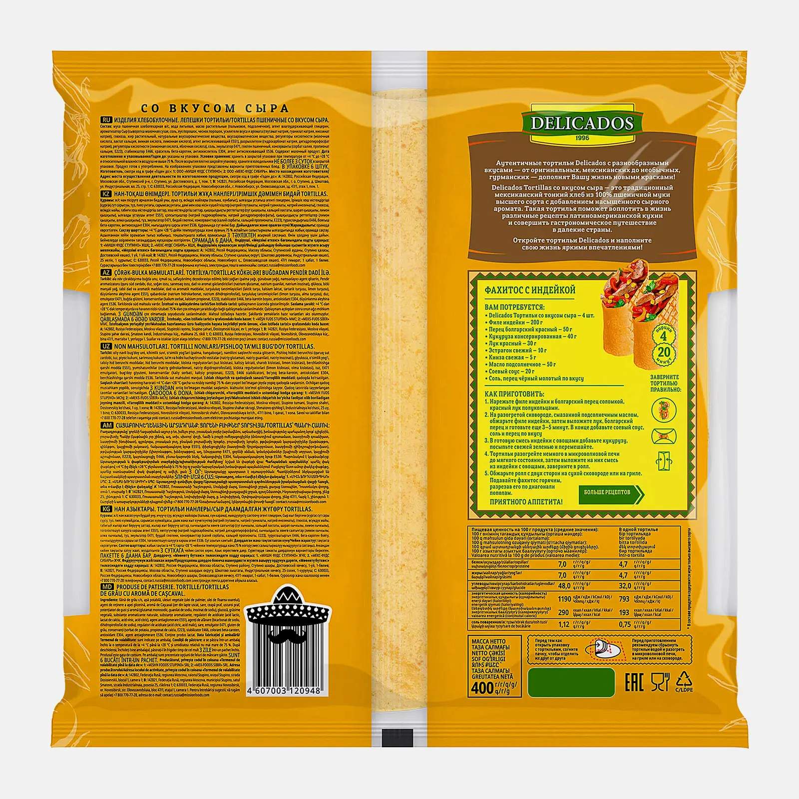 Мексиканское национальное угощение создано из очищенной воды и муки высшего сорта. Оно выпечено на открытом огне, благодаря чему обладает нежным ароматом, плотной структурой, легкой корочкой и приятным сливочно-сырным вкусом.