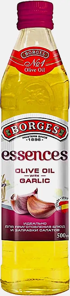 Масло с ароматом чеснока произведено из отборных оливок. Плоды обрабатывают по технологии холодного первого отжима, что придает продукту выразительные ароматические и вкусовые качества, также позволяет сохранить максимум полезных веществ.