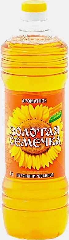 Подсолнечное масло изготовлено из отборных семян подсолнечника с южных областей России. При сильном нагревании не пенится и не даёт брызг, не нагружает пищу посторонними запахами.