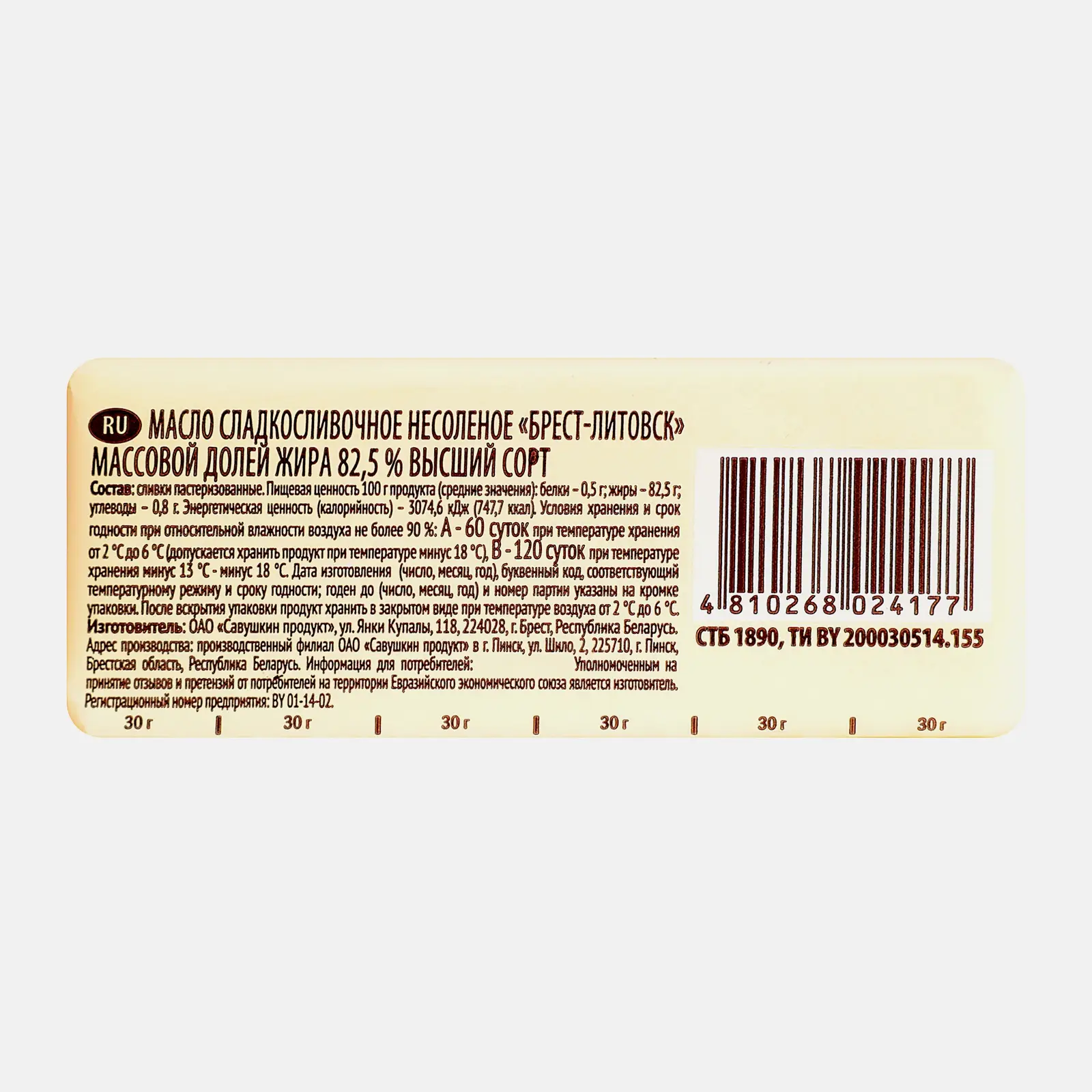 У масла светло-жёлтый цвет и нежный сливочный аромат. Оно сделано по старинным рецептам с использованием новейших производственных технологий. Любое блюдо с добавлением масла будет иметь мягкий, изысканный и благородный вкус.