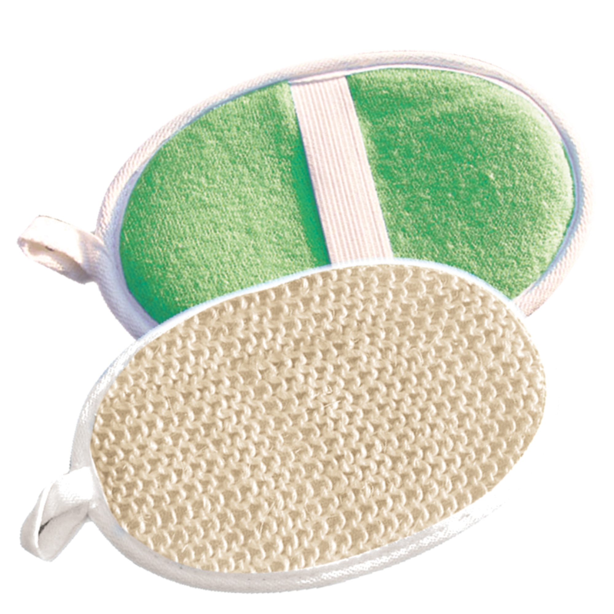 Натуральная двусторонняя мочалка для мытья и массажа тела. Одна сторона – из сизаля, другая – из хлопка. Компактна, незаменима во время путешествий, посещения бассейна. Удобна в использовании, отлично моет и массирует, снимает огрубевшие частички кожи, делая ее мягкой на ощупь и помогая расслабиться. Имеет оптимальный размер и удобную форму. Благодаря петельке удобно хранить на крючке.