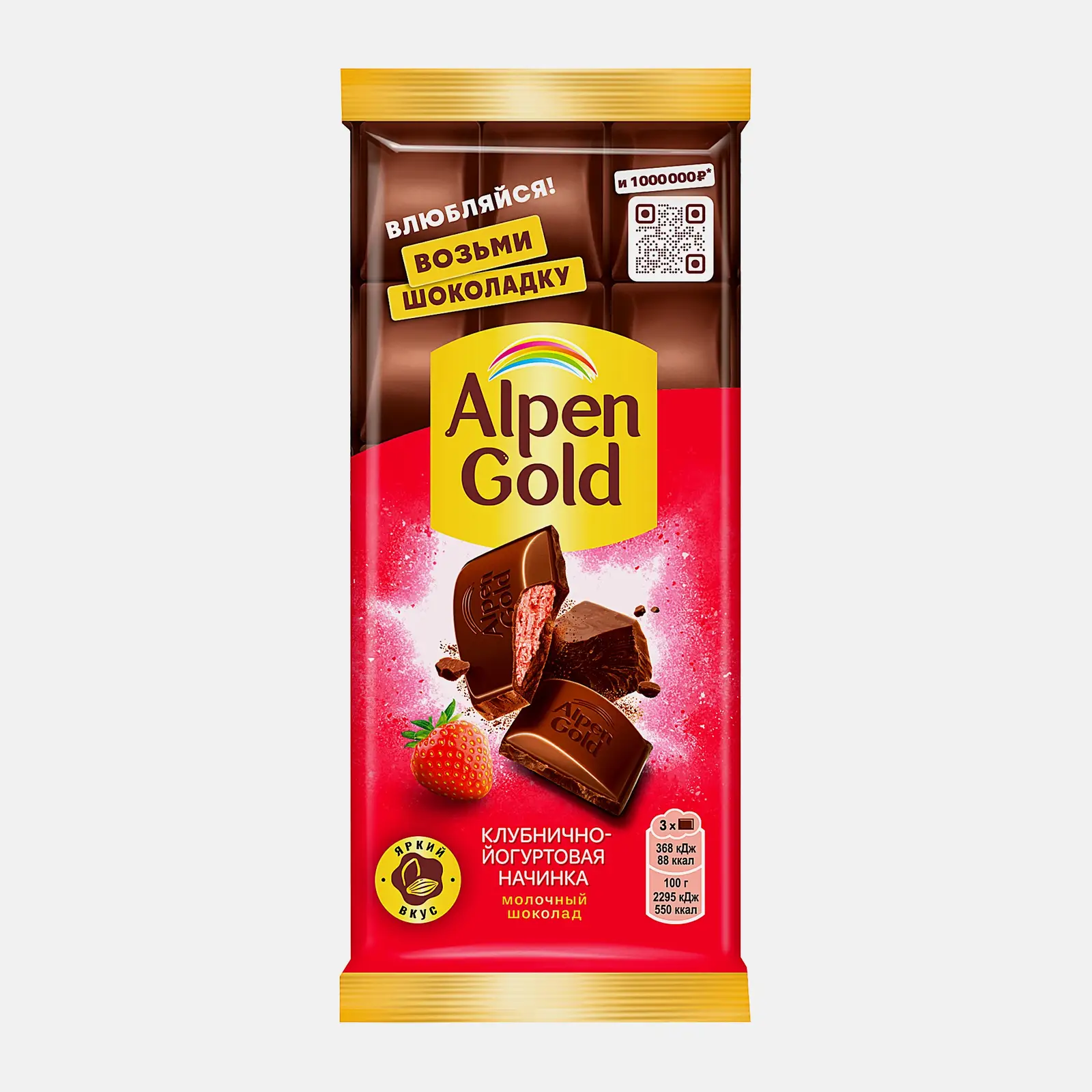 Молочный шоколад с клубнично-йогуртовой начинкой Alpen Gold 80г