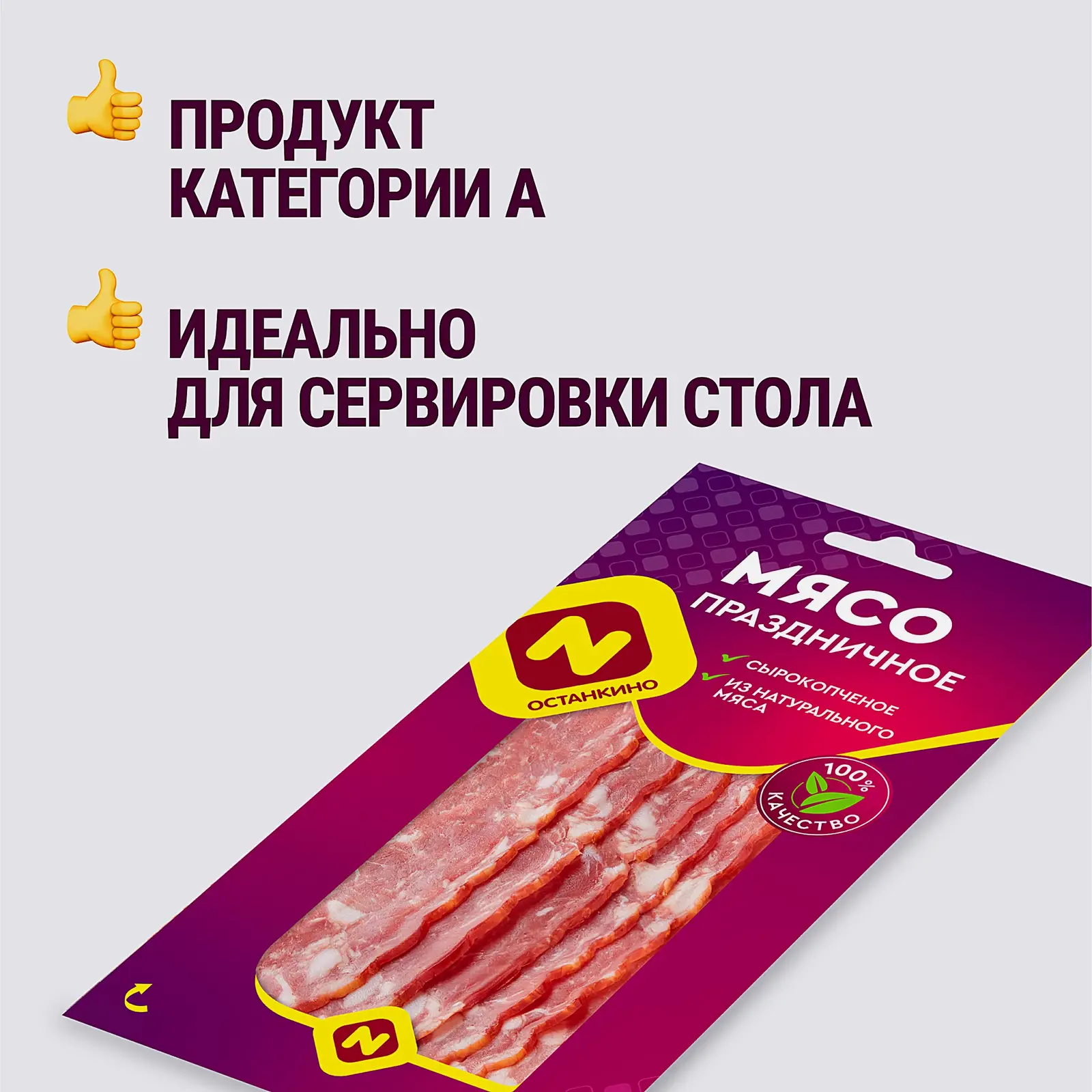 Сырокопчёный деликатес категории А в тонкой нарезке — удобно для сервировки, канапе и быстрых перекусов.