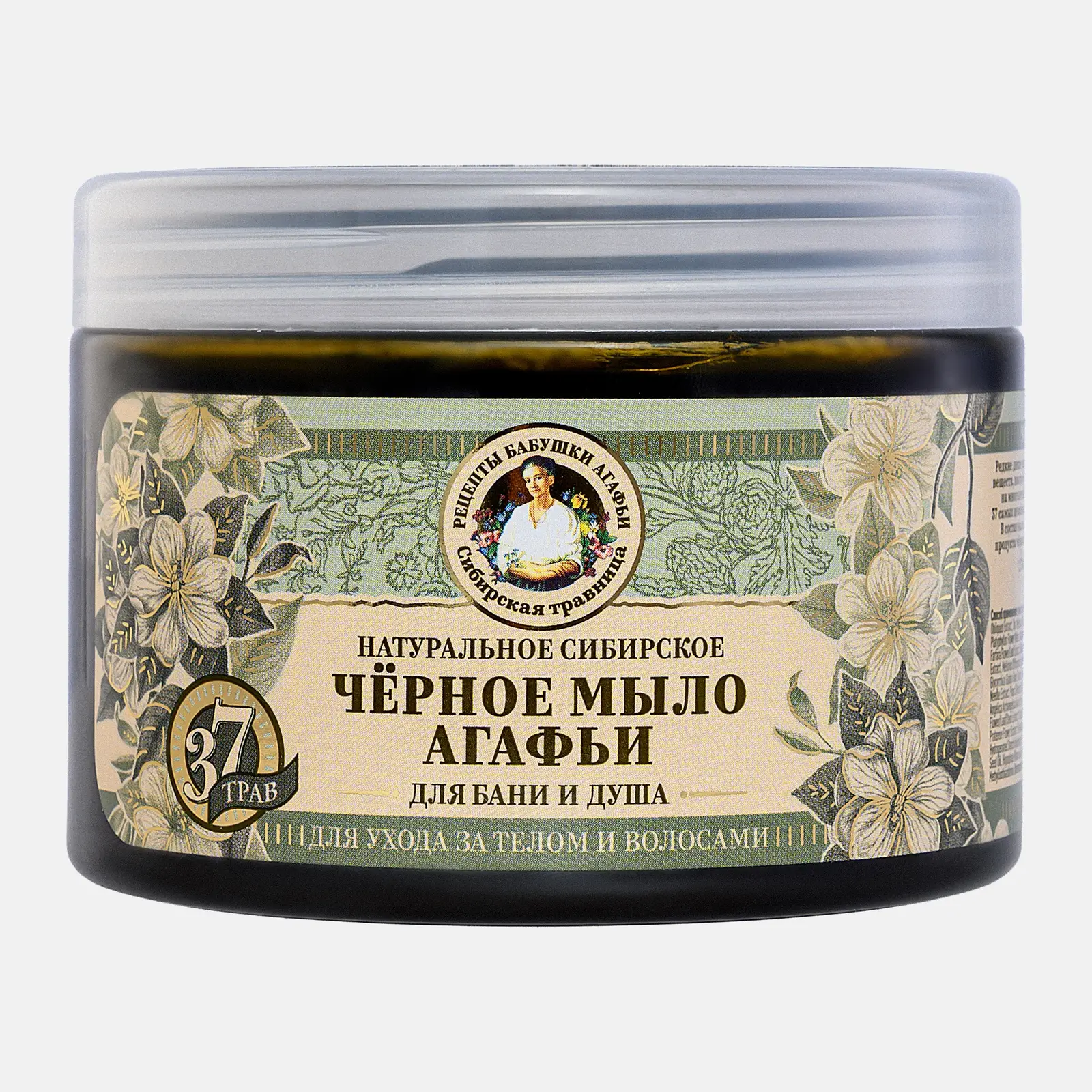 В состав мыла для бани входит дёготь и березовая чага, поэтому мыло чёрного цвета, его можно использовать и как шампунь, и как гель для душа.