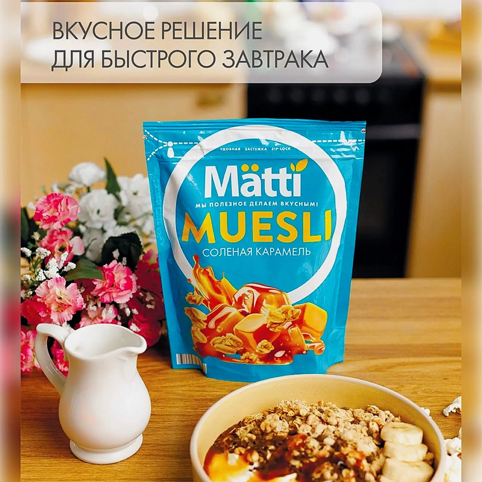 Мюсли Matti Соленая карамель 250г — это полезное сочетание злаков и карамели, которые не только радуют своим приятным вкусом, но и быстро утоляют чувство голода. Овсяные хлопья насыщены клетчаткой, минеральными веществами, которые способствуют нормализации обменных процессов в организме. Продукт надолго остается вкусным, свежим и ароматным благодаря удобной упаковке с застежкой zip-lock. Мюсли сразу же готовы к употреблению. При желании к ним можно добавить молоко, йогурт, сок. Они подходят в качестве полноценного завтрака, который приносит пользу каждый день и надолго избавляет от чувства голода.