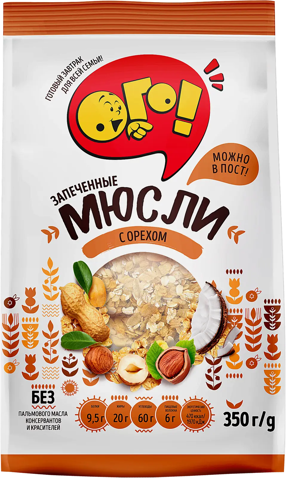 Мюсли содержат в себе натуральные запеченные пшеничные и овсяные хлопья, а также смесь орехов. Достаточно добавить сок, кефир, йогурт или молоко — и завтрак готов.