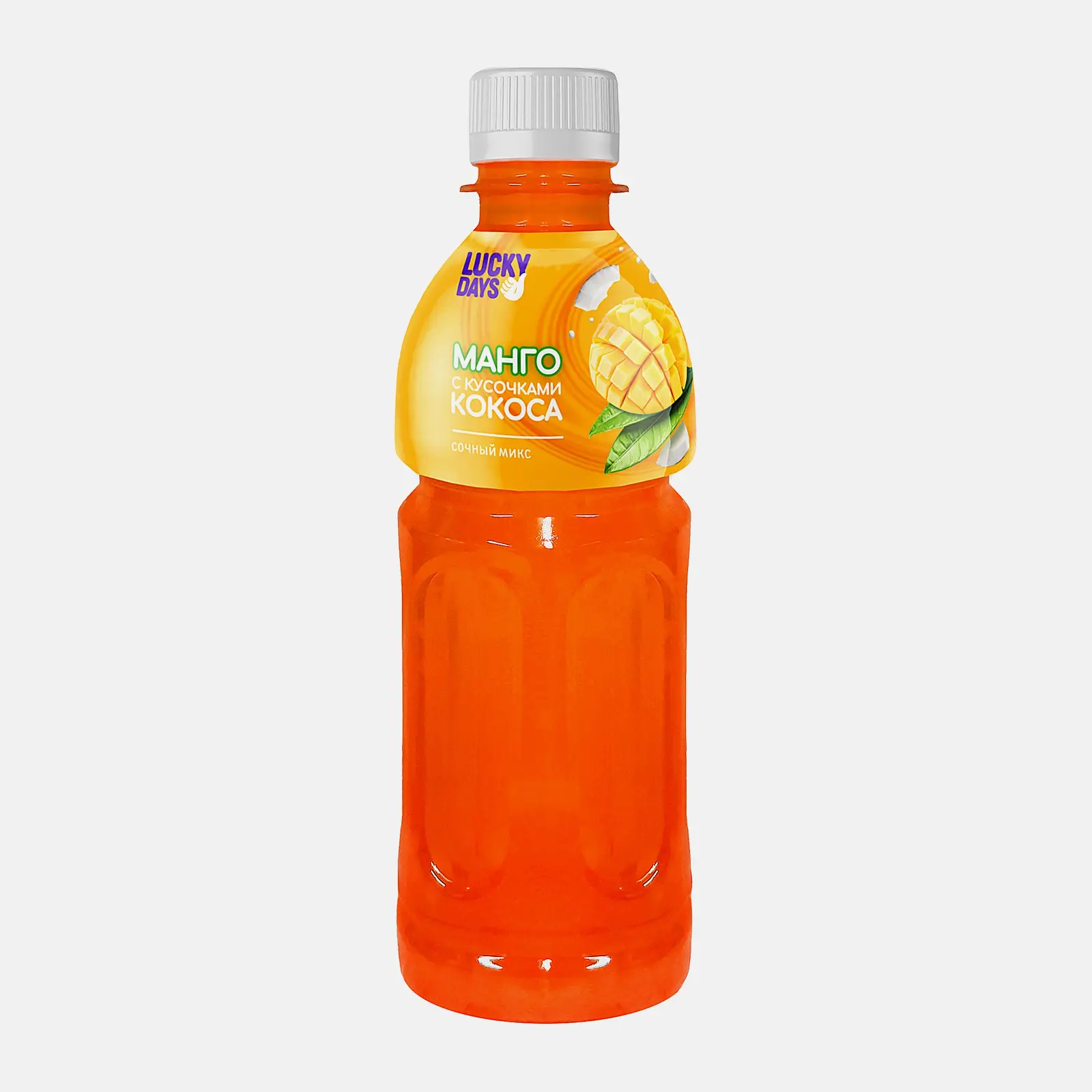 Безалкогольный напиток без газа прекрасно освежает. Вкус спелого сладкого манго оттеняют кусочки кокосового желе, добавляя экзотический вкус и аромат. В основе напитка — очищенная питьевая вода, яблочный сок и кусочки кокса.