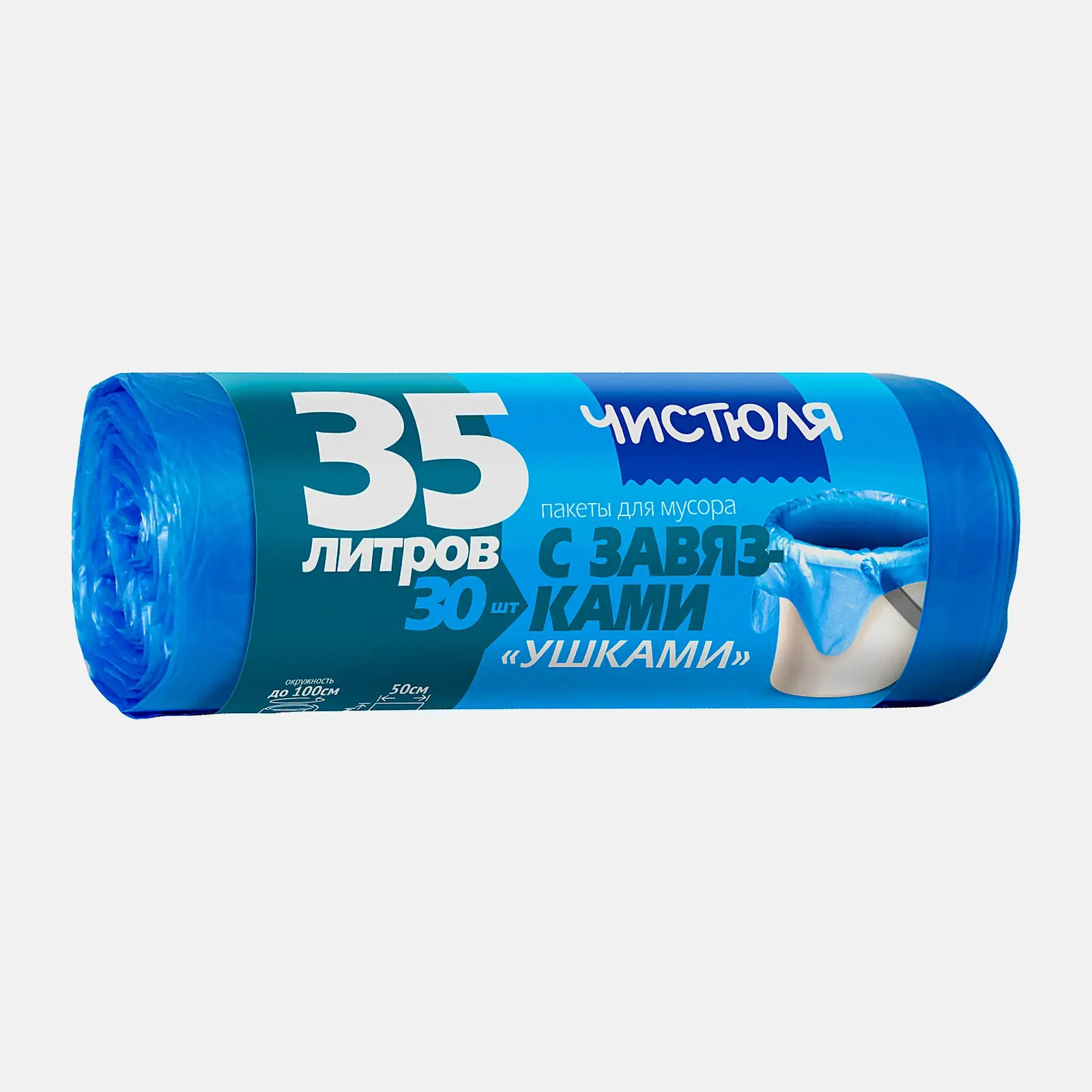 Пакеты для мусора Чистюля с завязками-ушками синие 35л 30шт