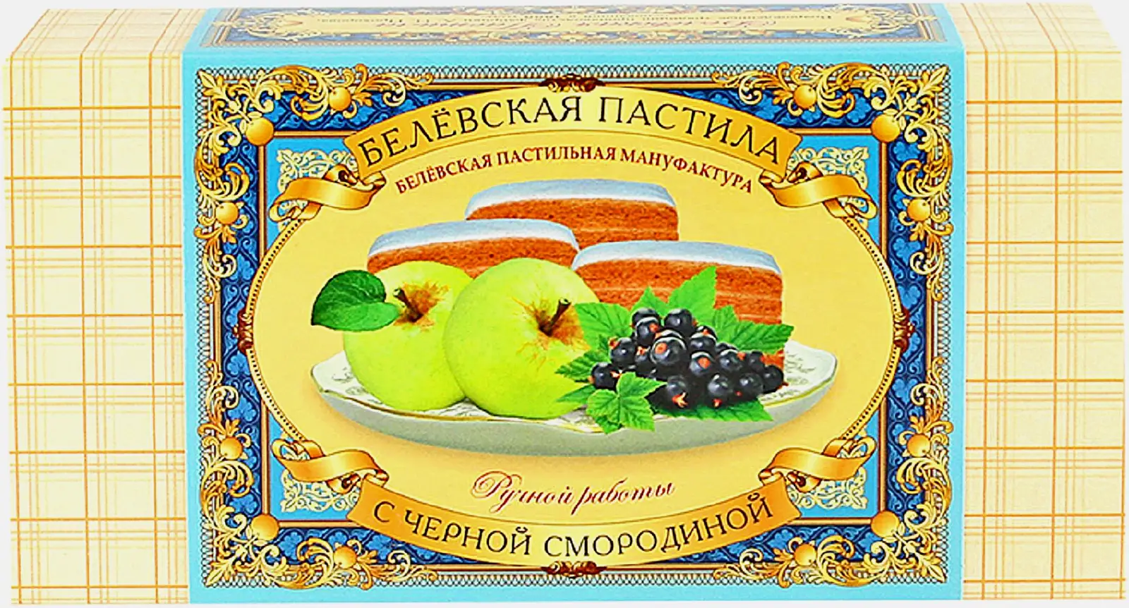 Единственное отличие от классической белёвской пастилы — добавка в виде чёрной смородины, которая вносит яркие ноты в традиционно яблочный «антоновский» вкус. Пастила ручной работы, с приятной фруктовой кислинкой, плотна и воздушна, ароматна и абсолютно натуральна.