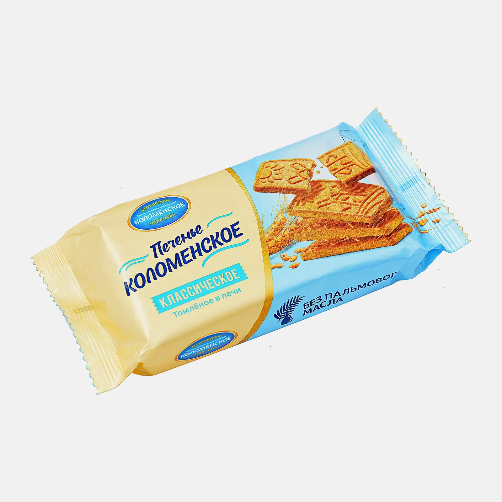 Печенье Коломенское Классическое 120г — название не случайно, оно именно то, к которому мы привыкли с детства, разве что штамповка другая. Сейчас на каждой печеньке оттиснута ветряная мельница, а над ней — солнце, но ингредиенты какие положено: пшеничная мука высшего сорта, яичный меланж, подсолнечное масло, сахар, вода и разрыхлители. В чае или в кофе такое быстро размокает, так что будьте пошустрее. Но по этой же причине оно прекрасно подходит для кулинарии: и пирожные «Картошка», и колбаски с орехами, и фруктовые / творожные торты без выпечки получатся из него просто идеально. Только в кулинарных целях надо брать две-три упаковки сразу, одна — это на завтрак.