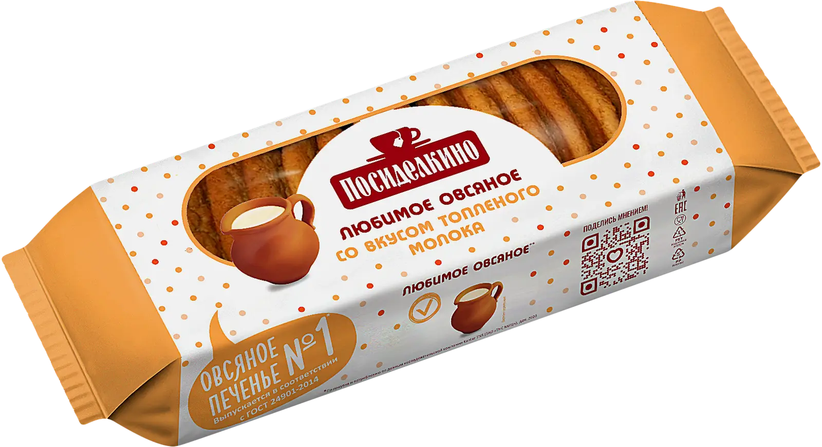 Печенье Посиделкино овсяное вкус топленое молоко 310г — оригинальное лакомство, в котором сочетается польза овсяных хлопьев и нежность молочных продуктов. Изготовлено по традиционной технологии с добавлением натуральной корицы. В составе присутствуют только натуральные компоненты, нет ароматизаторов и усилителей вкуса. Печенье обладает текстурой средней твердости, легко надкусывается и не крошится. Продукт отлично подходит к утреннему завтраку с молоком или чаем, а также для сытного перекуса в течение рабочего дня.
