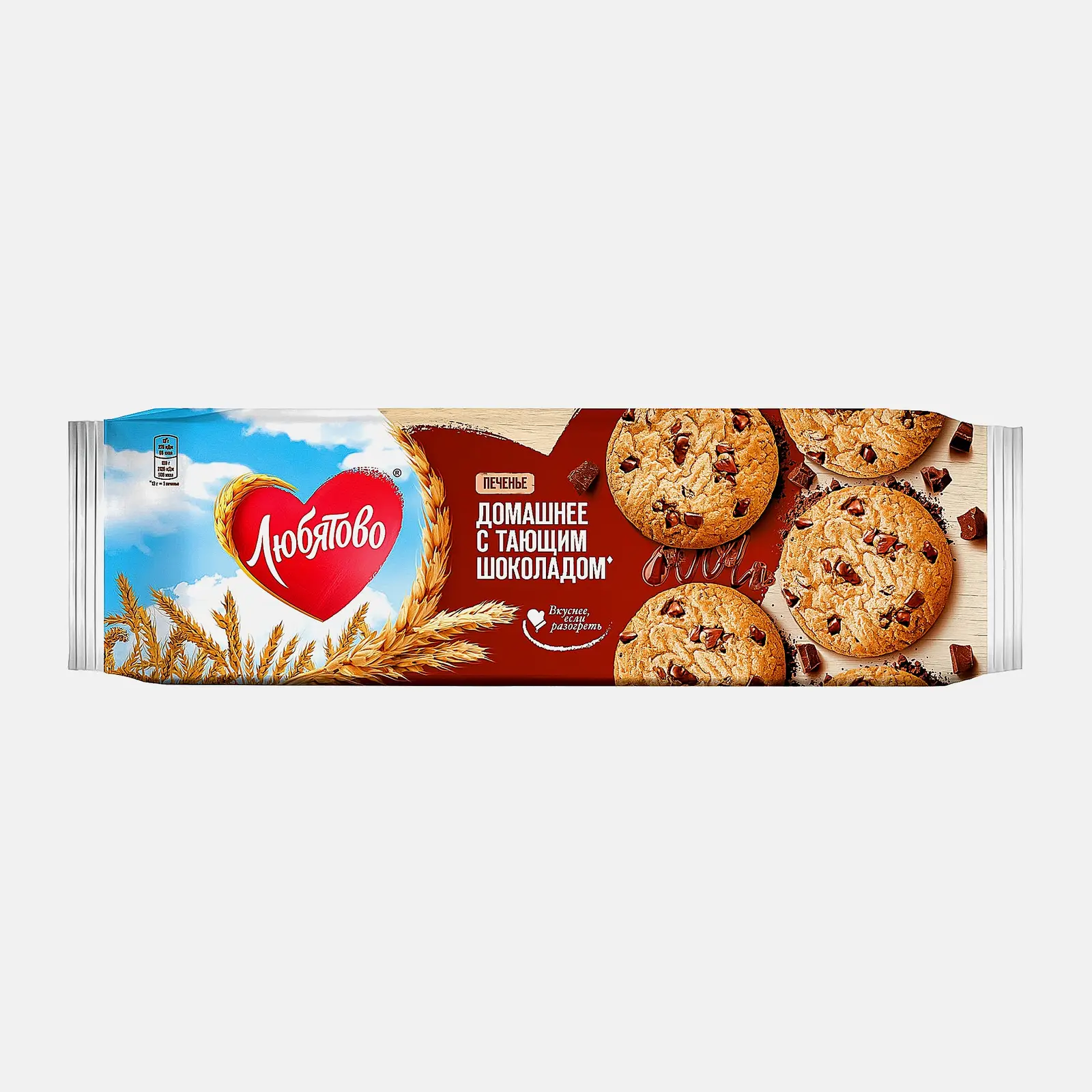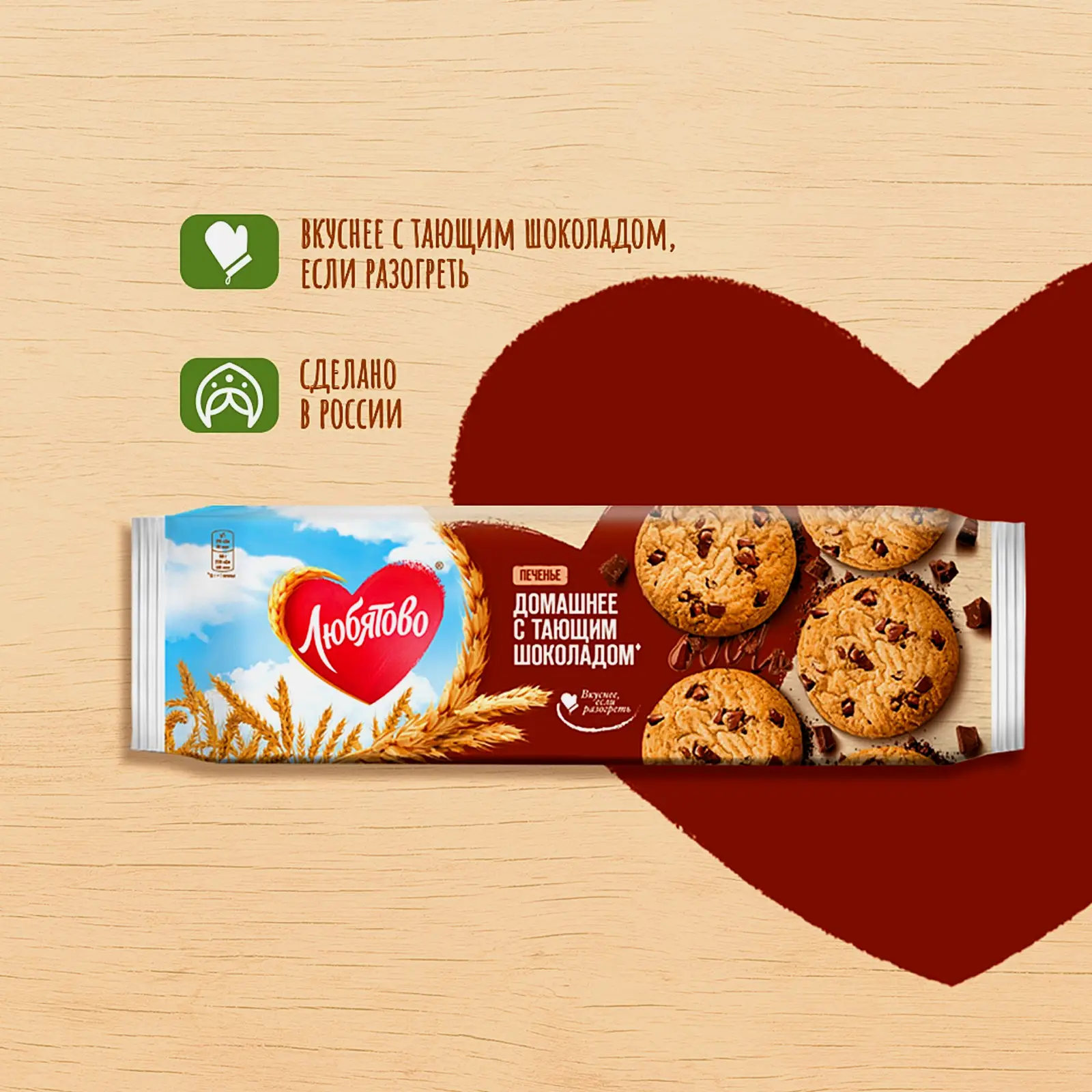 Рассыпчатое хрупкое печенье усеяно кусочками тёмного шоколада. Если подогреть его 10 секунд в микроволновке, то шоколад подтает, а тёплое печенье будет пахнуть, как свежеиспечённое. Но даже без этого эффекта лакомство покоряет своим натуральным вкусом и текстурой.