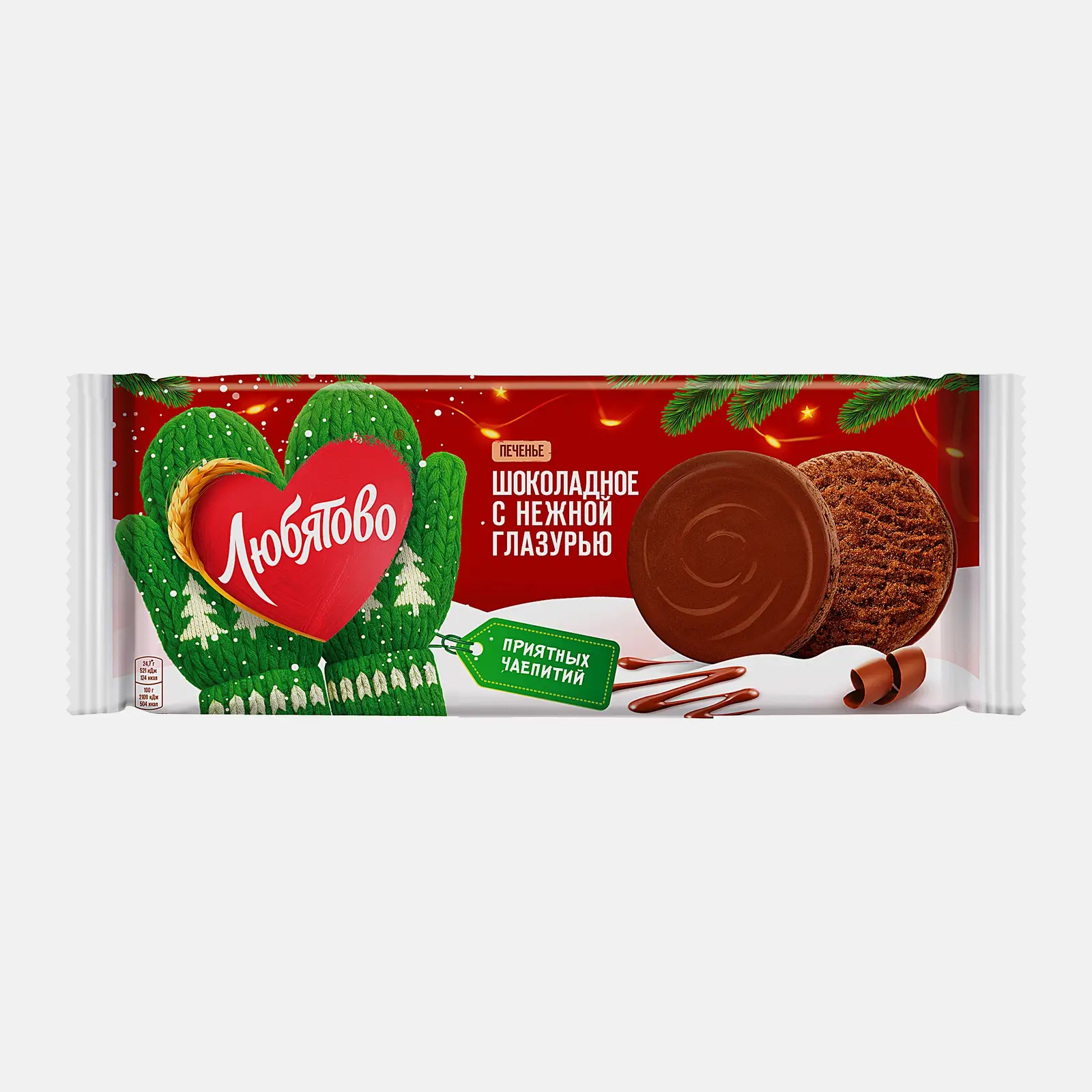 Печенье сдобное шоколадное с нежной глазурью Любятово 197г