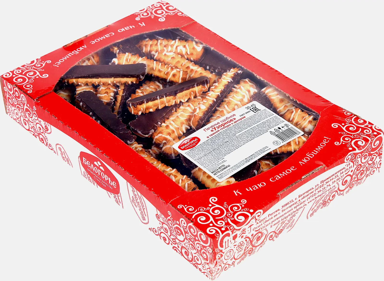 Печенье сдобное Белогорье узорное с темной глазурью 550г производится в соответствие с требованиями ГОСТ. Нежное тесто отличается рассыпчатостью - лакомство просто тает во рту. Дополняет вкус кондитерского изделия темный шоколад, которым покрыта нижняя часть выпечки. Такое угощение составит отличный тандем чаю, кофе, молоку, какой, молочным коктейлям, газированным напиткам, фруктовому соку. Его можно использовать для приготовления других десертов. Вместе с печеньем к столу можно подать фрукты и ягоды, взбитые сливки.