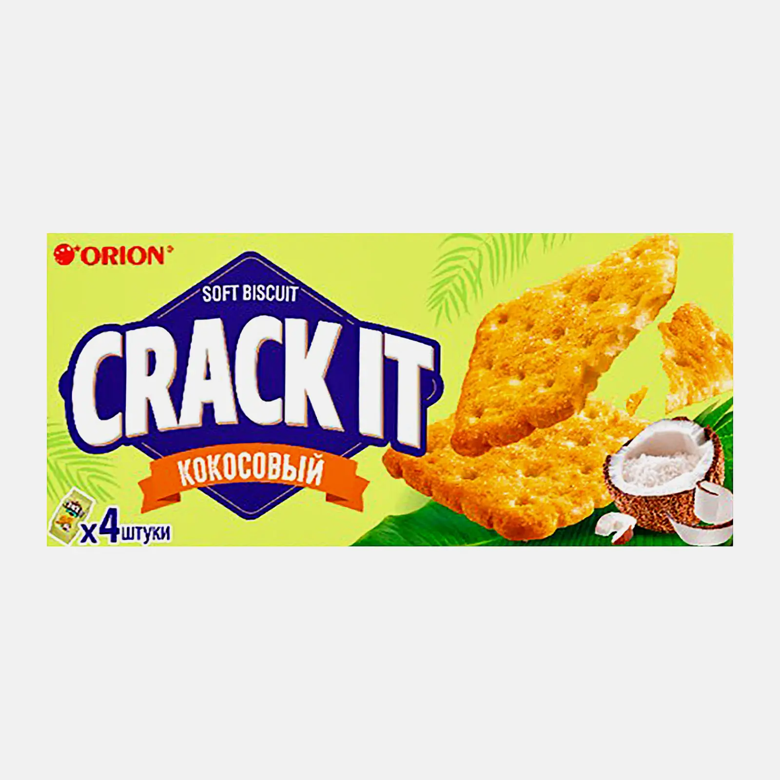 Печенье Orion Crack-it Coconut затяжное 72г — оригинальные крекеры с кокосовым вкусом, адресованные истинным любителям кокоса и тропического настроения. Это нежное сливочное печенье, которое изготовлено по принципу затяжного, а значит, многократно раскатано для получения плотной текстуры с хрустящими слоями. Благодаря традиционным дырочкам слои хорошо пропечены, поэтому прекрасно хрустят при раскусывании, а их сливочный вкус уравновешивает легкую сухость. Также в тесто добавлено натуральное кокосовое масло и кокосовая стружка. Вместе они дарят максимальное кокосовое наслаждение, которое может быть в печенье. Десерт упакован в удобную плоскую коробочку из картона, а также в фольгированный пакетик.