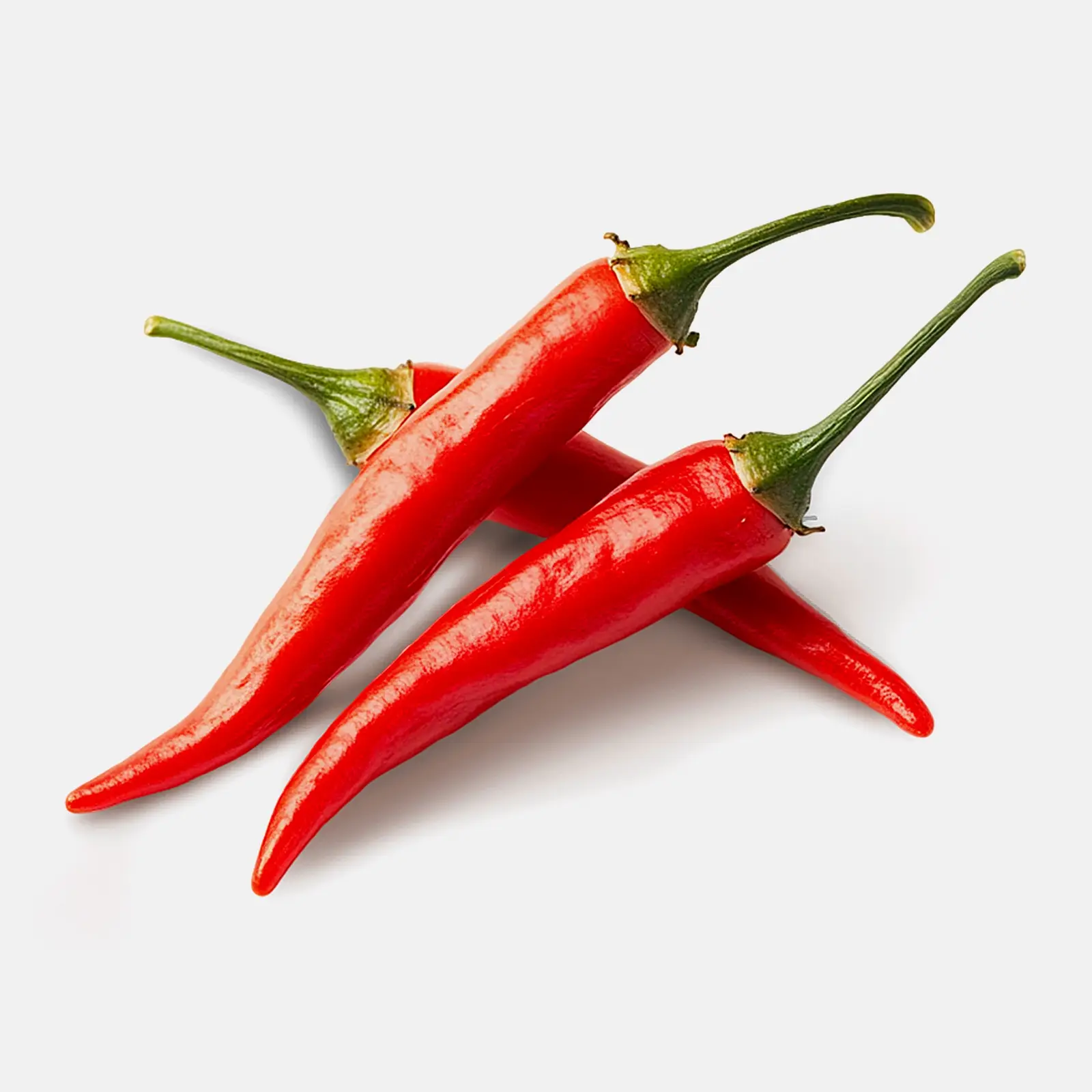 Плоды удлинённой формы и небольшого размера привлекают внимание ярко-красным цветом. Поверхность – кожистая и гладкая. Жгучий, острый вкус перца чили придаст яркие ноты блюдам из мяса, рыбы и овощей.