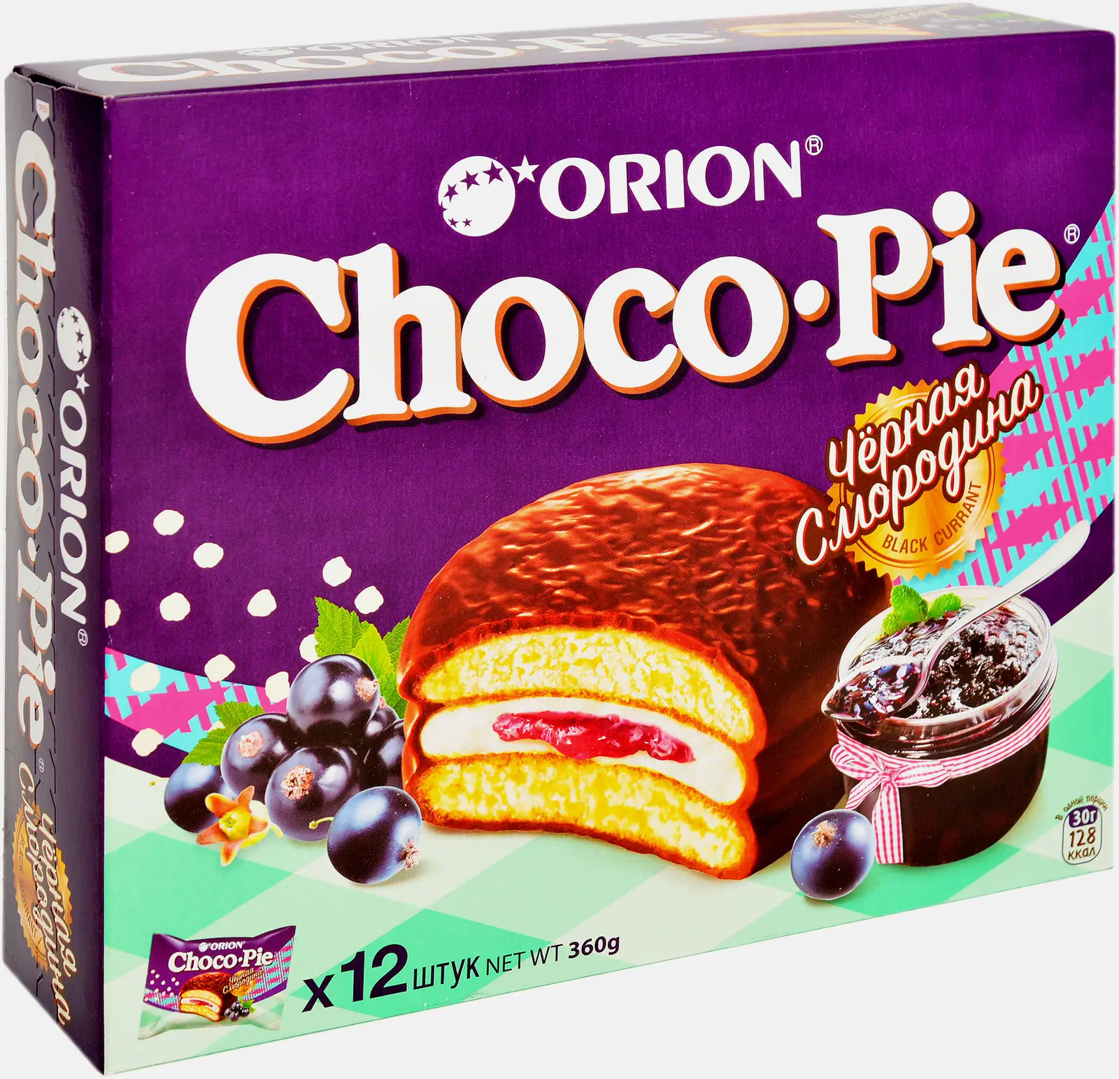 Классический вкус Orion Choco-Pie дополнен яркой нотой чёрной смородины. Под тонкой шоколадной глазурью — 2 мягких бисквитных печенья, соединённых белым суфле. А в его толще — прослойка черносмородинового джема. Ягодная нотка чудесно контрастирует с шоколадной горчинкой.